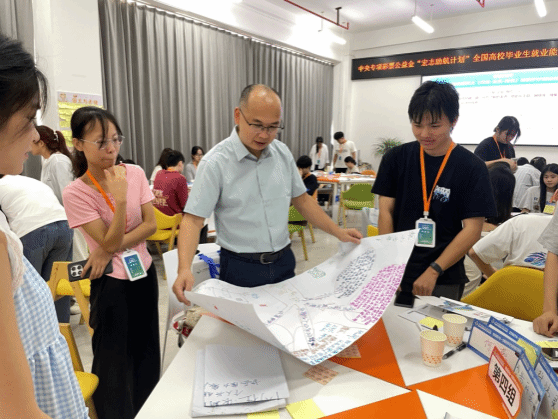 为实现“训有所获、学以致用”,广西建院基地着力打造多维度实战训练平台。在技能提升层面,提供“一对一”AI简历诊断优化与模拟面试等定制化服务,助力学员精准匹配岗位需求;开设AI信息处理课程,提升学员信息筛选与风险防范能力。在面试能力培养上,邀请企业人力资源总监亲临授课,通过“三版自我介绍迭代+多轮模拟面试+精准点评”的闭环训练,系统提升学员面试竞争力。培训还设置“国王与天使”互动环节,营造互助共进的集体氛围,有效提升学员的团队协作与沟通能力。
