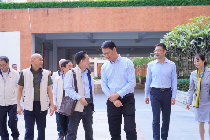 学校领导、教师代表同校友一起参观校园