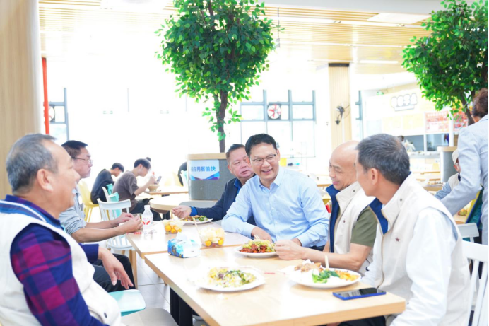 学校领导、教师代表同校友一起在学校食堂用餐