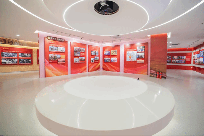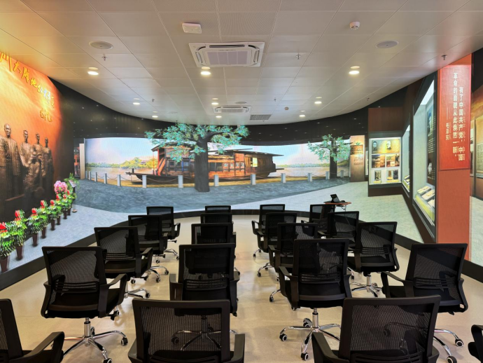 基地以“起承转合”的表现手法串联红船大厅、党史教育馆、虚拟仿真教学中心、360度沉浸式体验馆四大部分。