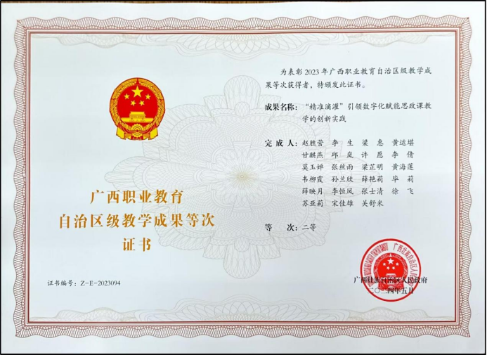 广西职业教育自治区级教学成果特等奖