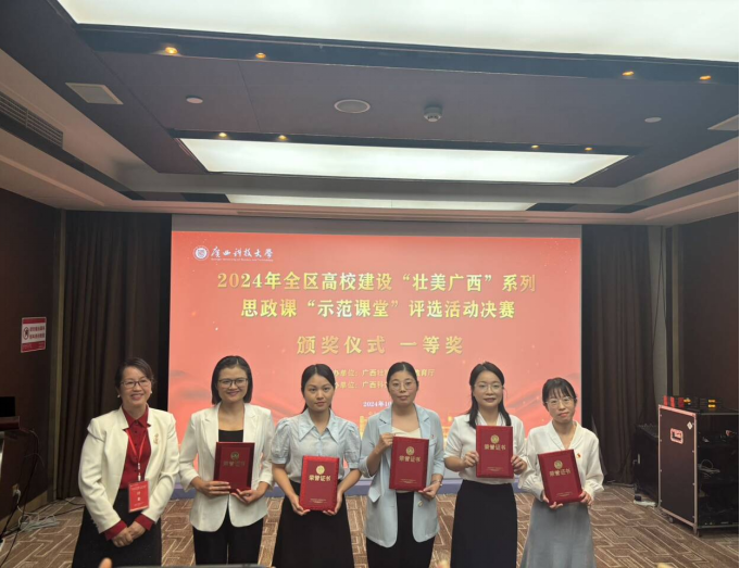 团队教师参加2024年全区高校建设“壮美广西”系列思政课“示范课堂”活动获一等奖1项、二等奖1项、三等奖2项