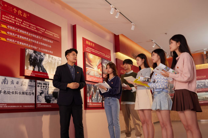 以“虚拟仿真教学中心”为“芯”,60个虚拟仿真场景、20个全景场馆如行走的“党史长卷”,延展百年党史时间跨度,打破教育资源空间局限,提升思政课吸引力和教学实效性,尽享视觉盛宴。