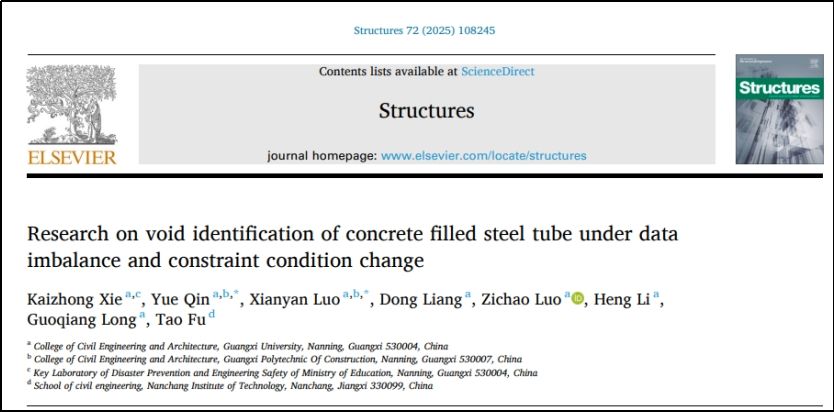 随后,覃悦和团队将研究延伸至大跨度桥梁的安全核心——钢管混凝土结构。作为通讯作者,他与广西大学、广西新发展集团协同攻关,于2025年2月在顶级期刊《Structures》(JCR Q1)提出一种基于人工智能算法的轻量级脱空识别模型。该模型在广西某大跨度拱桥项目中成功应用,识别精度超90%,参数大小仅0.77 M,具有良好的推广价值。这一突破为国家重大交通基础设施的长期安全运维提供了创新解决方案,并获得了国家重点研发计划、广西自然科学基金等多个项目支持。