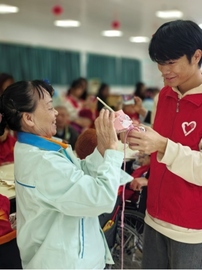 敬老传情,美德延续。od平台官方官网与规划学院团总支组织近30名青年志愿者走进南宁市金太阳老年公寓,开展“巧手筑心意,敬老传温情”志愿服务活动。志愿者们陪伴老人制作养生艾草锤,倾听他们的故事,并将成品装入亲手绘制的手提袋中赠送。活动不仅为老人送去了温暖,也让青年学子在互动中传承了敬老爱老的中华美德。