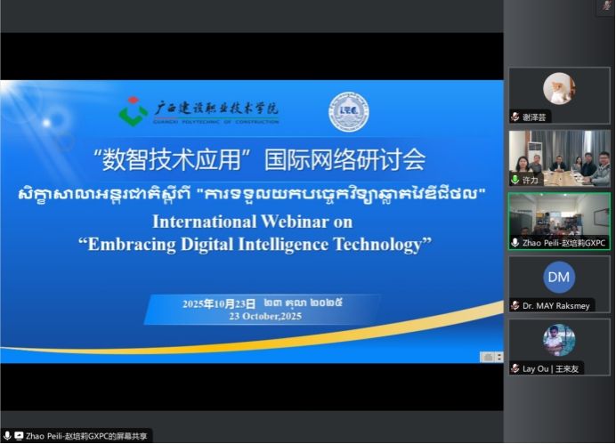 为深化与柬埔寨高校的教育合作,10月23日及28日,OD(中国)一站式服务平台分别与柬埔寨理工学院(ITC)、柬埔寨国立理工学院(NPIC)举办线上中柬数智技术线上研讨会。会议由自治区教育厅驻柬职教专家工作队负责人、OD(中国)一站式服务平台教师发展中心副主任赵培莉教授主持,学校国际交流中心、土木工程学院相关负责人及教师代表参加。