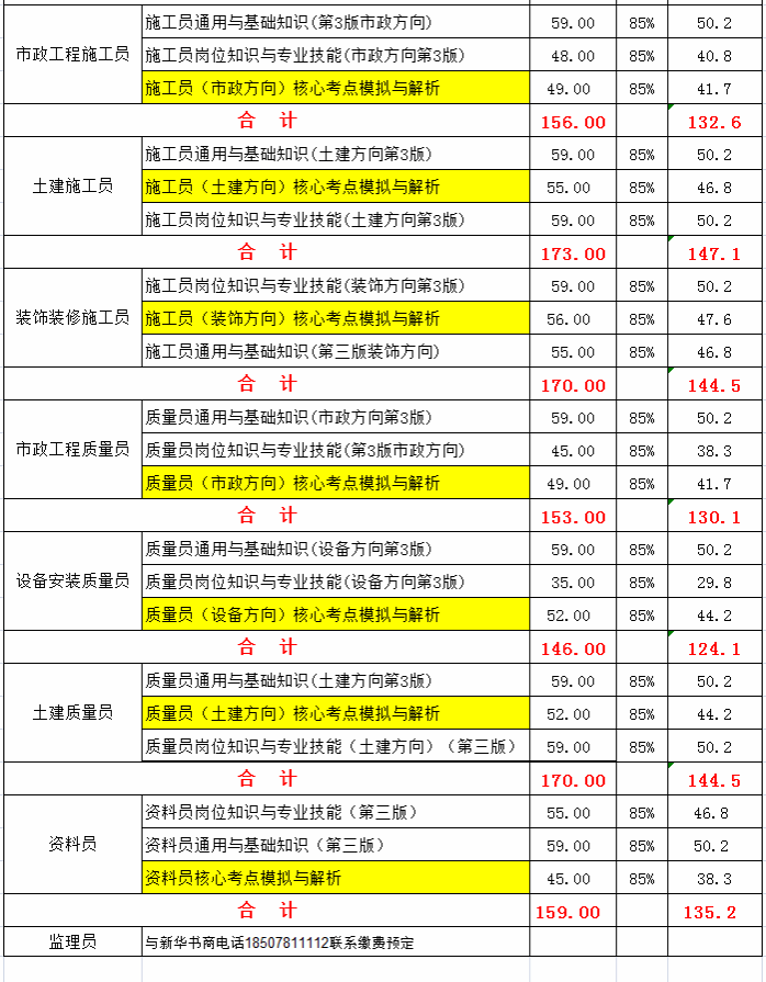 4 | 市政工程施工员 | 11 | 资料员 |