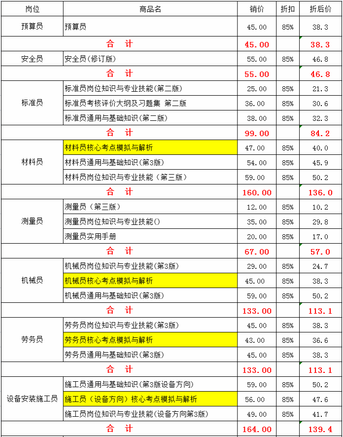 1 | 土建施工员 | 8 | 材料员 |