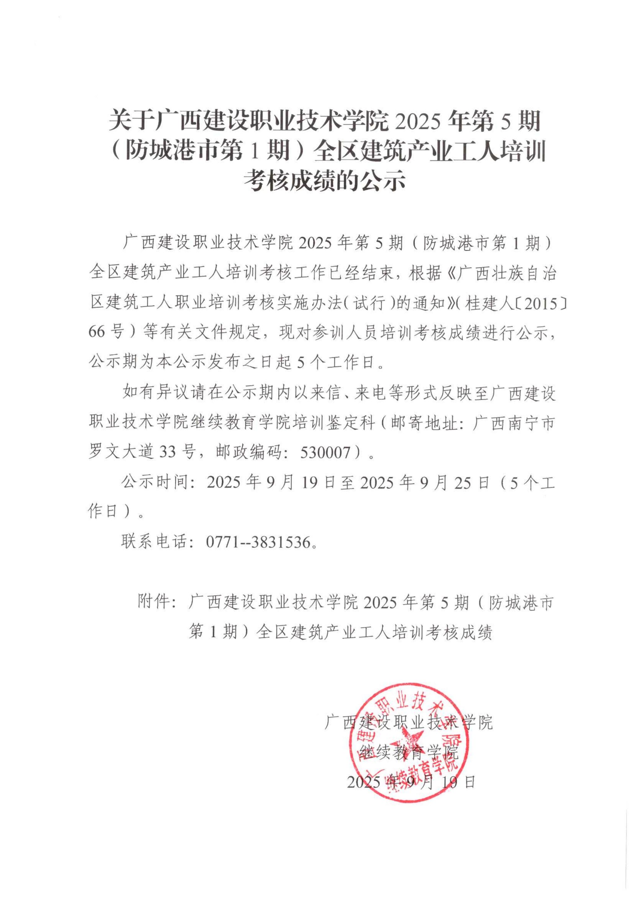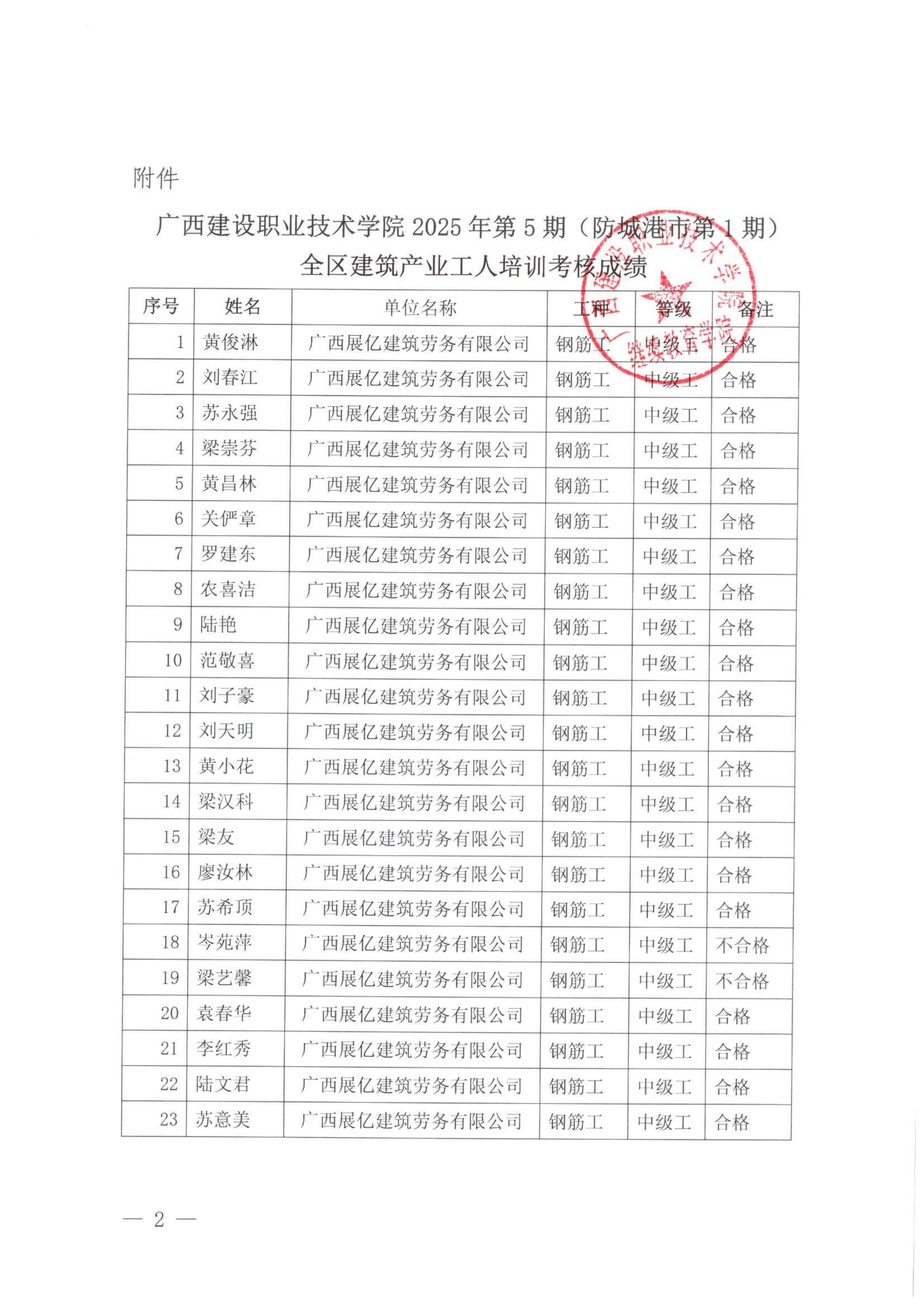 关于od平台官方官网2025年全区od平台官方官网产业工人第5期(防城港市第1期)培训考核成绩的公示
