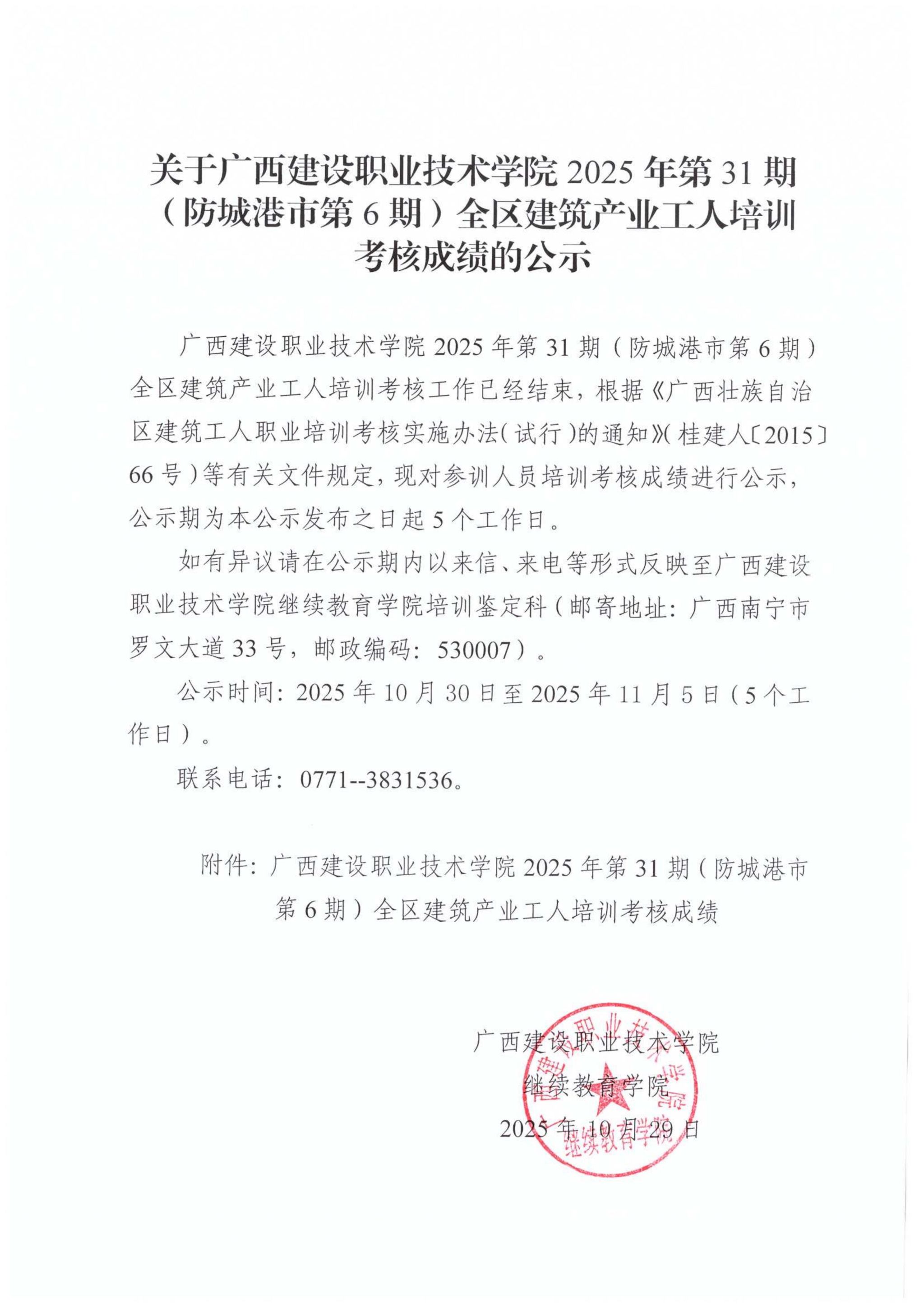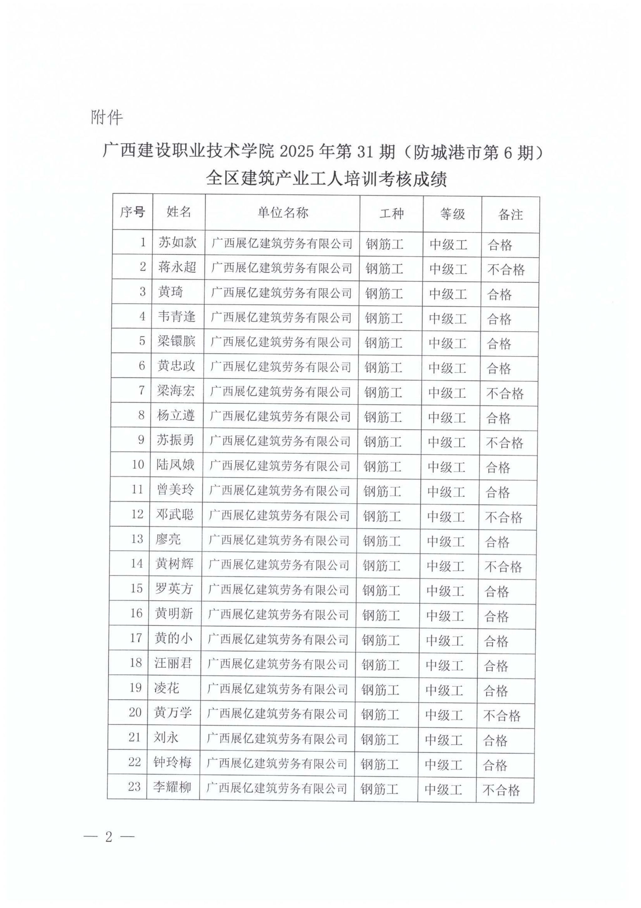 关于od平台官方官网2025年全区od平台官方官网产业工人第31期(防城港市第6期)培训考核成绩的公示