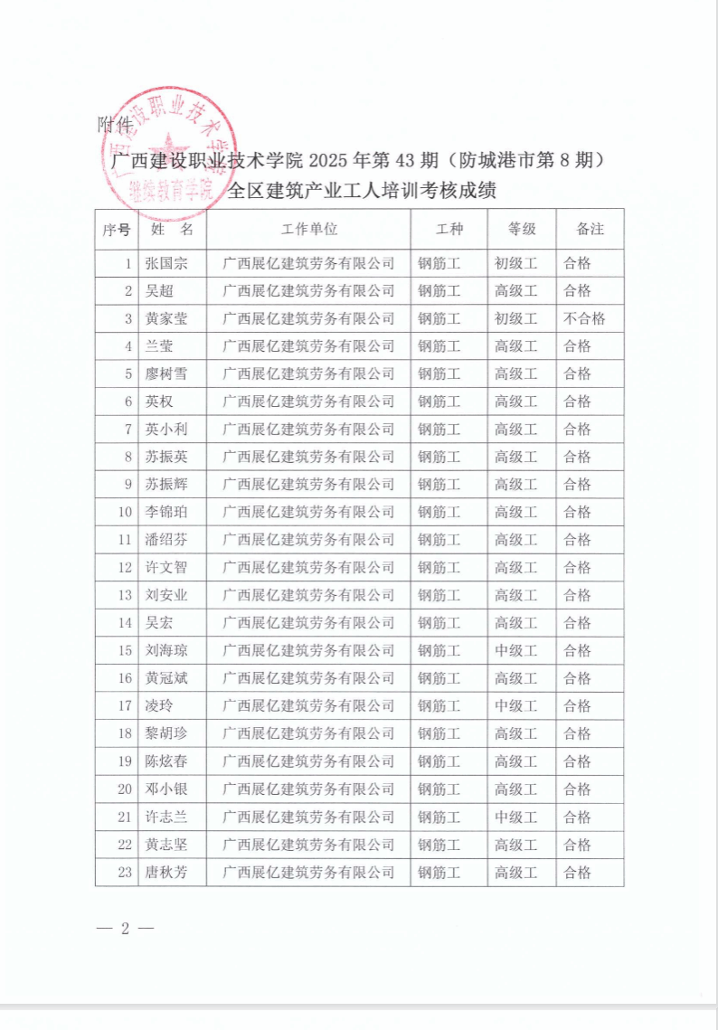 培训信息 当前位置: 首页 >> 培训信息 >> 正文 关于od平台官方官网2025年全区od平台官方官网产业工人第43期(防城港市第8期)培训考核成绩的公示 发布日期:2025-11-21 点击: 附件【关于od平台官方官网2025年全区od平台官方官网产业工人第43期(防城港市第8期)培训考核成绩的公示.pdf】已下载次