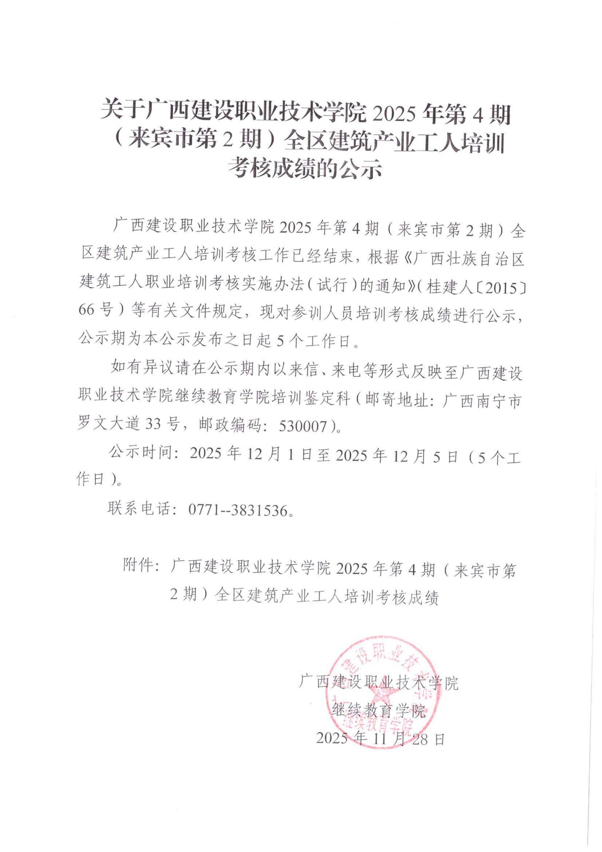 培训信息 当前位置: 首页 >> 培训信息 >> 正文 关于od平台官方官网2025年第4期(来宾市第2期)全区od平台官方官网产业工人培训考核成绩的公示 发布日期:2025-12-01 点击: 附件【关于od平台官方官网2025年第4期(来宾市第2期)全区od平台官方官网产业工人培训考核成绩的公示.pdf】已下载次