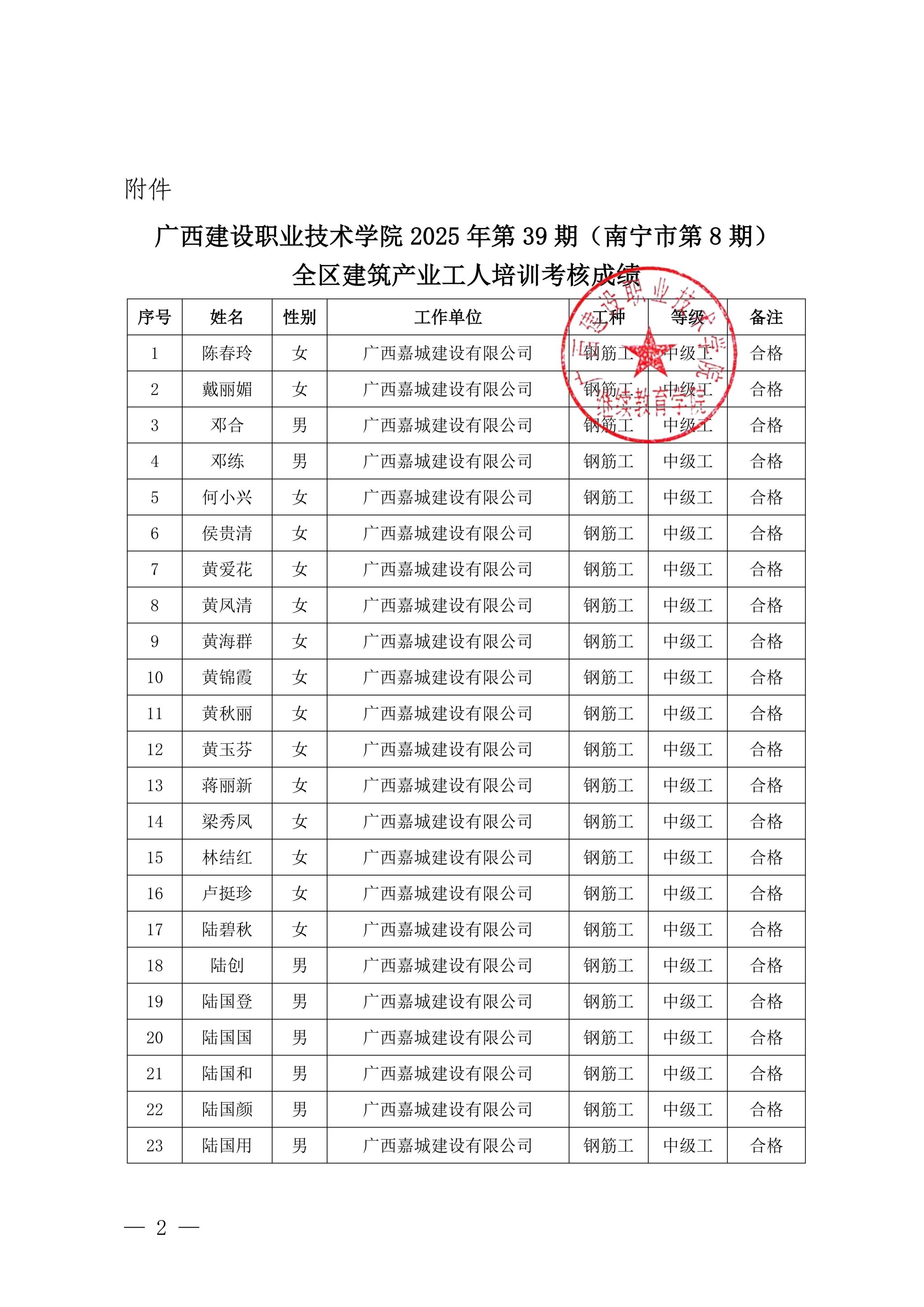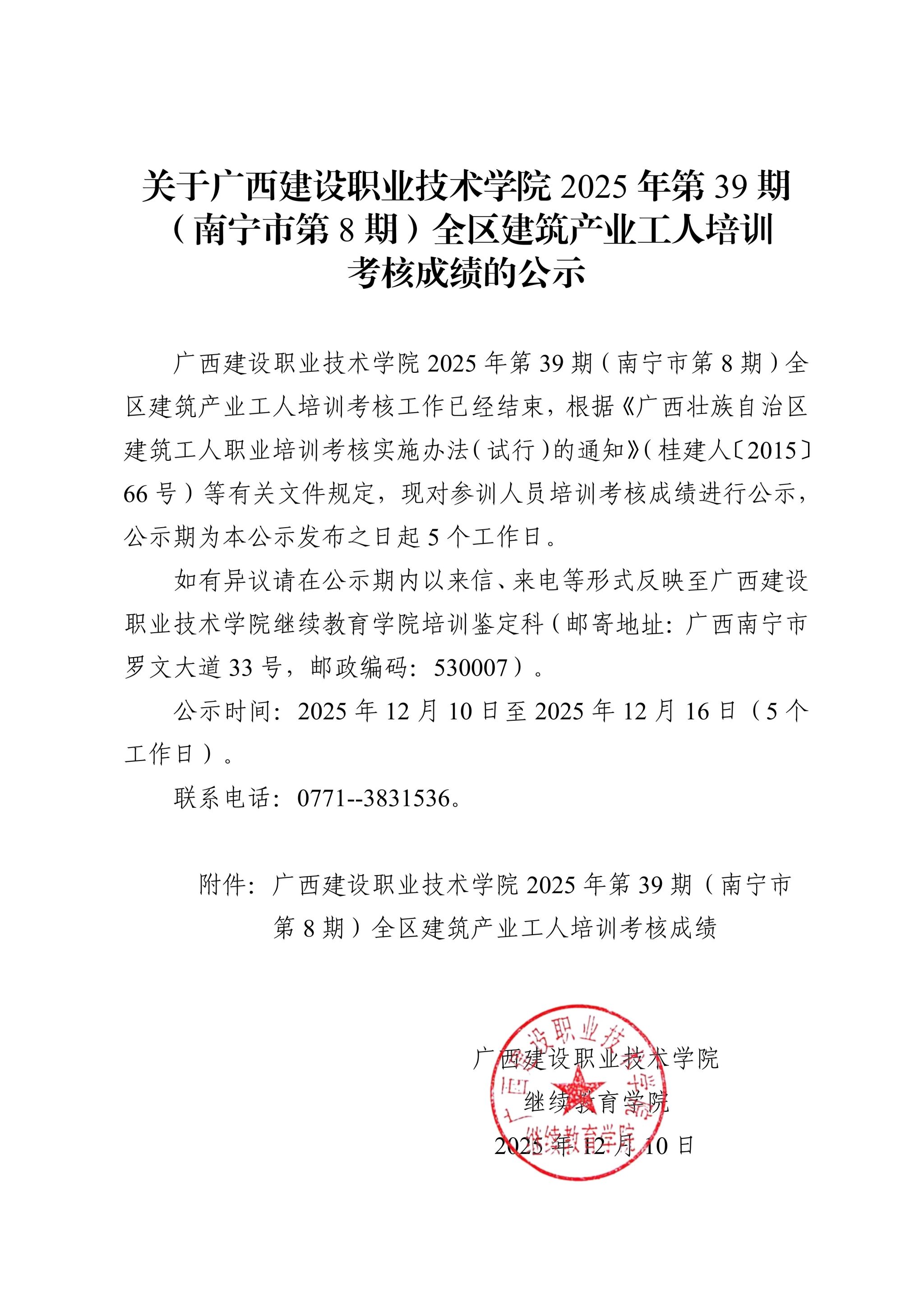 关于od平台官方官网2025年第39期(南宁市第8期)全区od平台官方官网产业工人培训考核成绩的公示