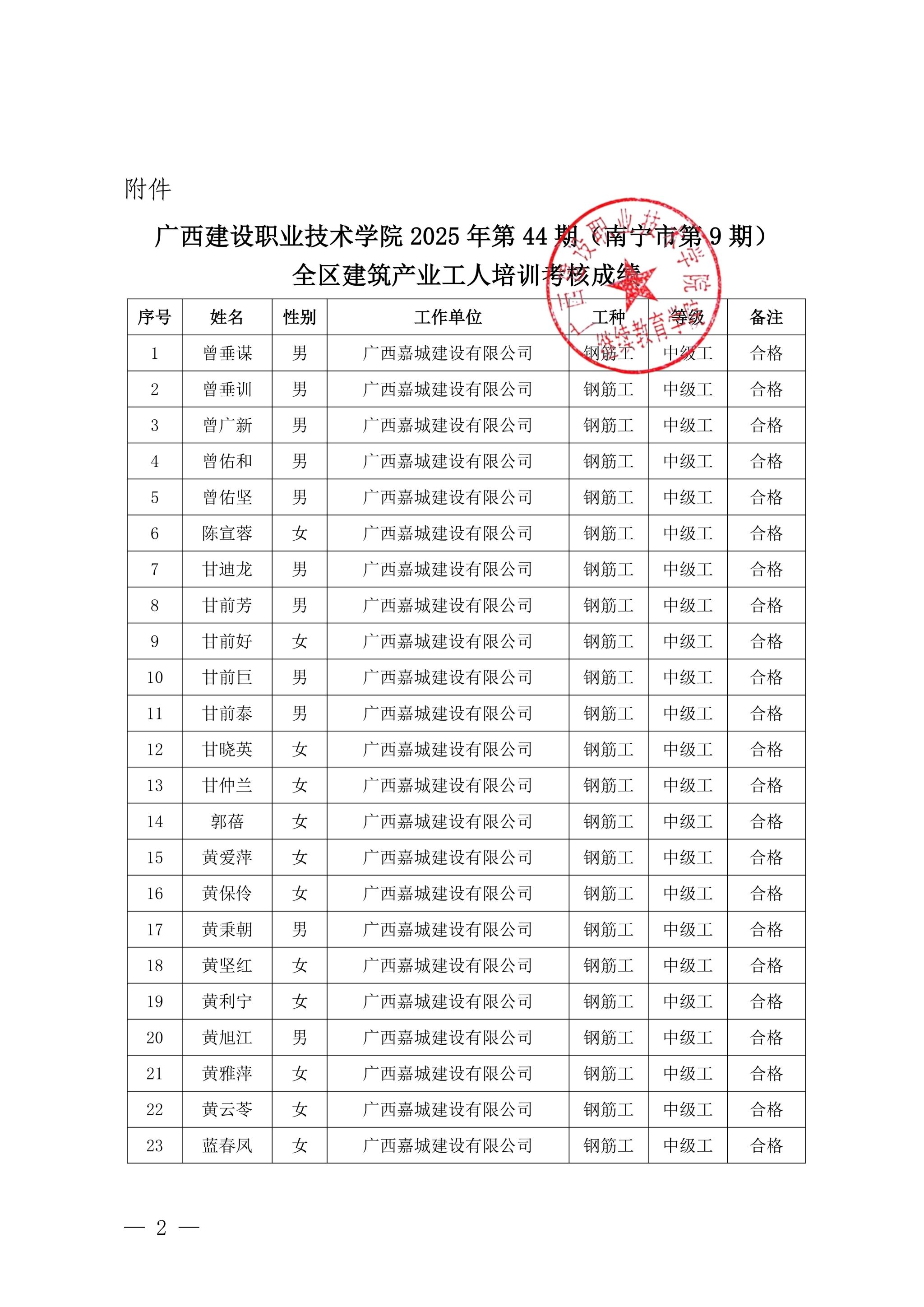 关于od平台官方官网2025年第44期(南宁市第9期)全区od平台官方官网产业工人培训考核成绩的公示