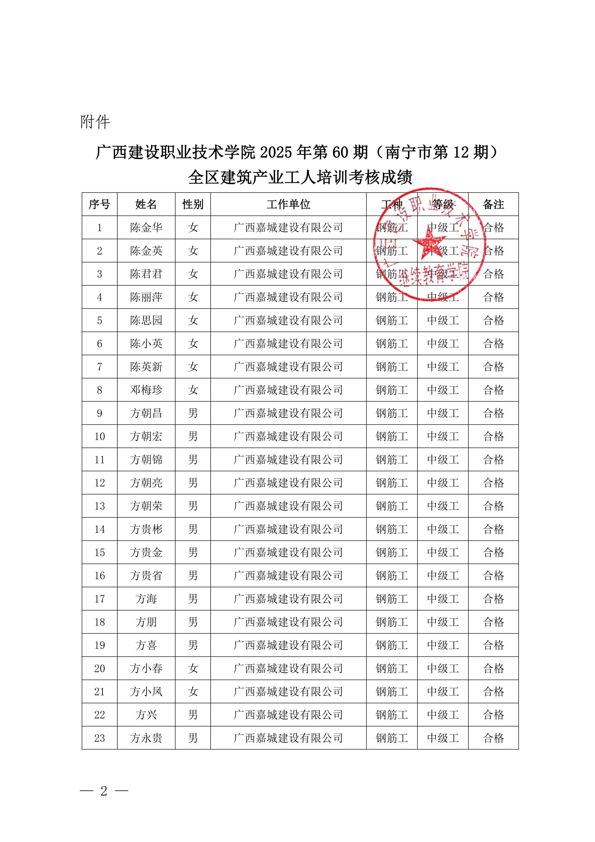 关于od平台官方官网2025年第60期(南宁市第12期)全区od平台官方官网产业工人培训考核成绩的公示