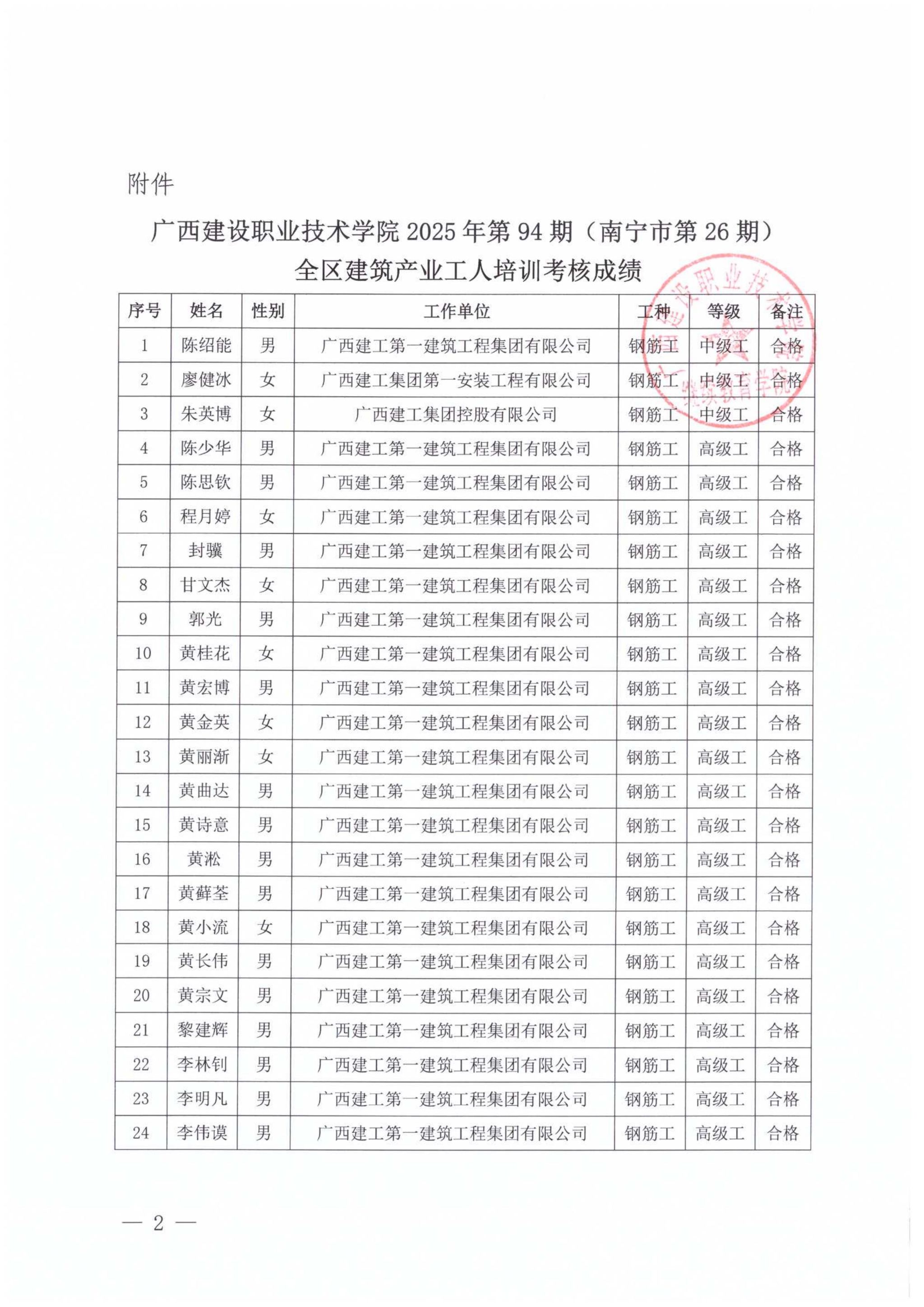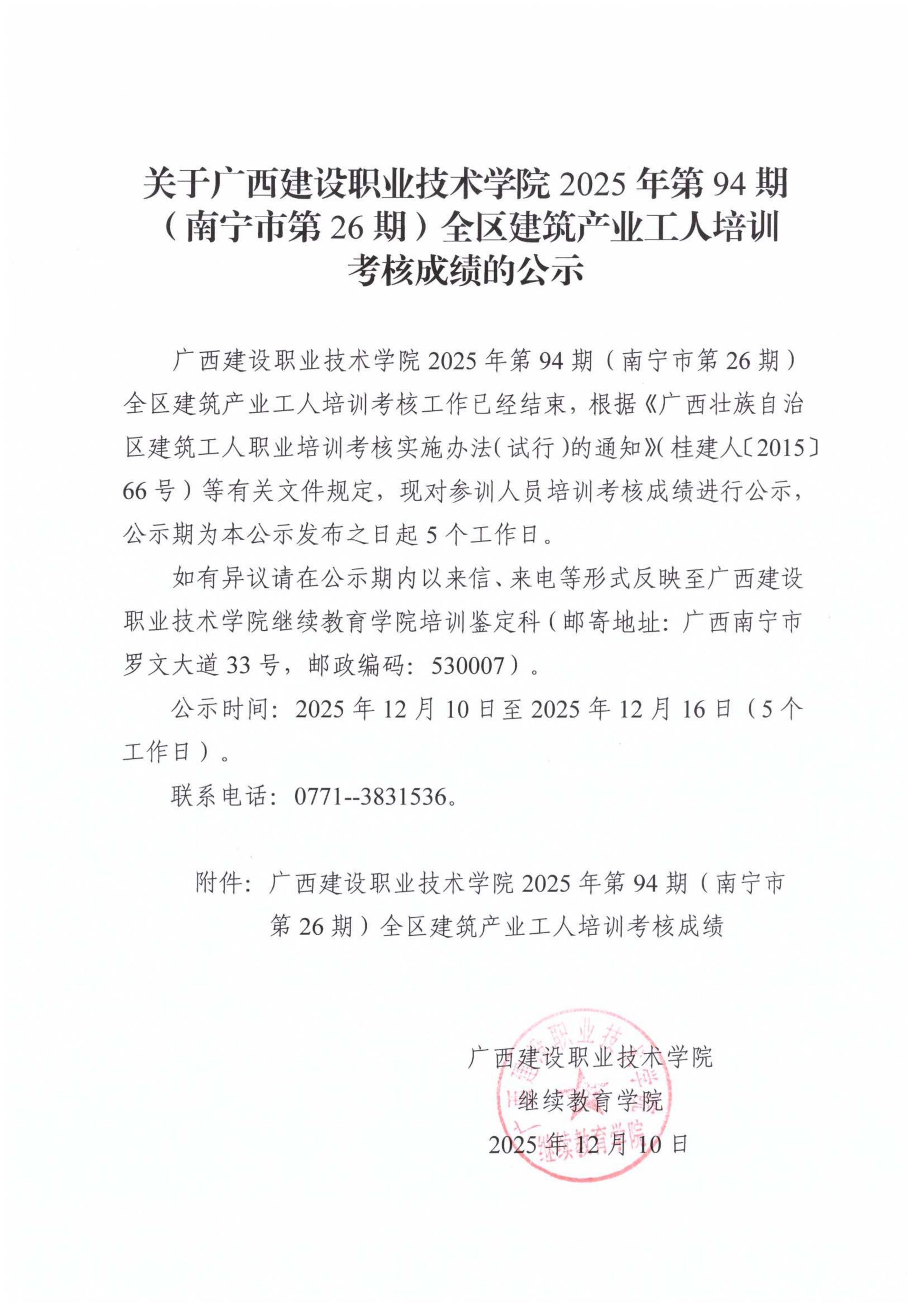 关于od平台官方官网2025年第94期(南宁市第26期)全区od平台官方官网产业工人培训考核成绩的公示