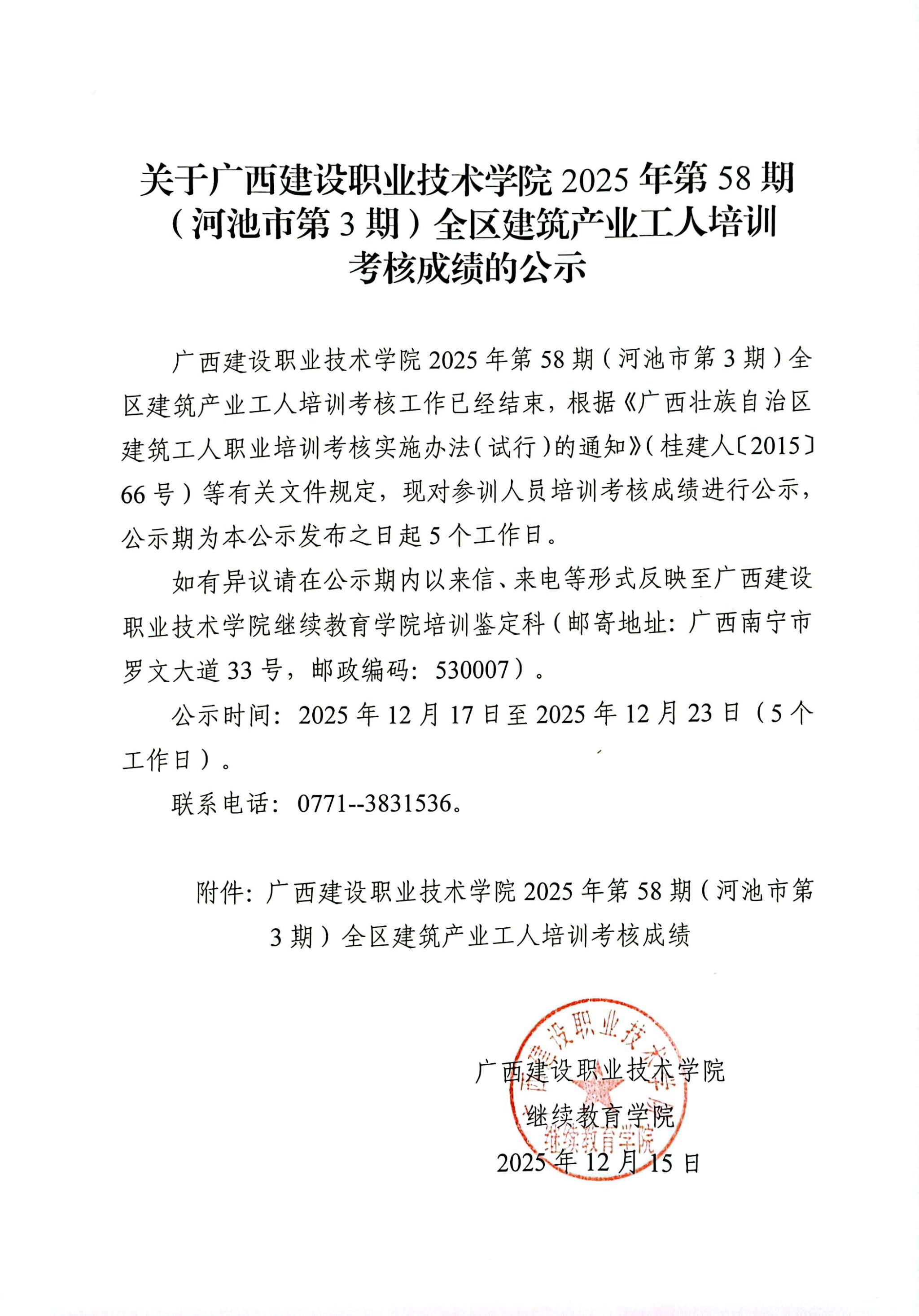 培训信息 当前位置: 首页 >> 培训信息 >> 正文 关于od平台官方官网2025年第58期(河池市第3期)全区od平台官方官网产业工人培训考核成绩的公示 发布日期:2025-12-17 点击: 附件【关于od平台官方官网2025年第58期(河池市第3期)全区od平台官方官网产业工人培训考核成绩的公示(1).pdf】已下载次