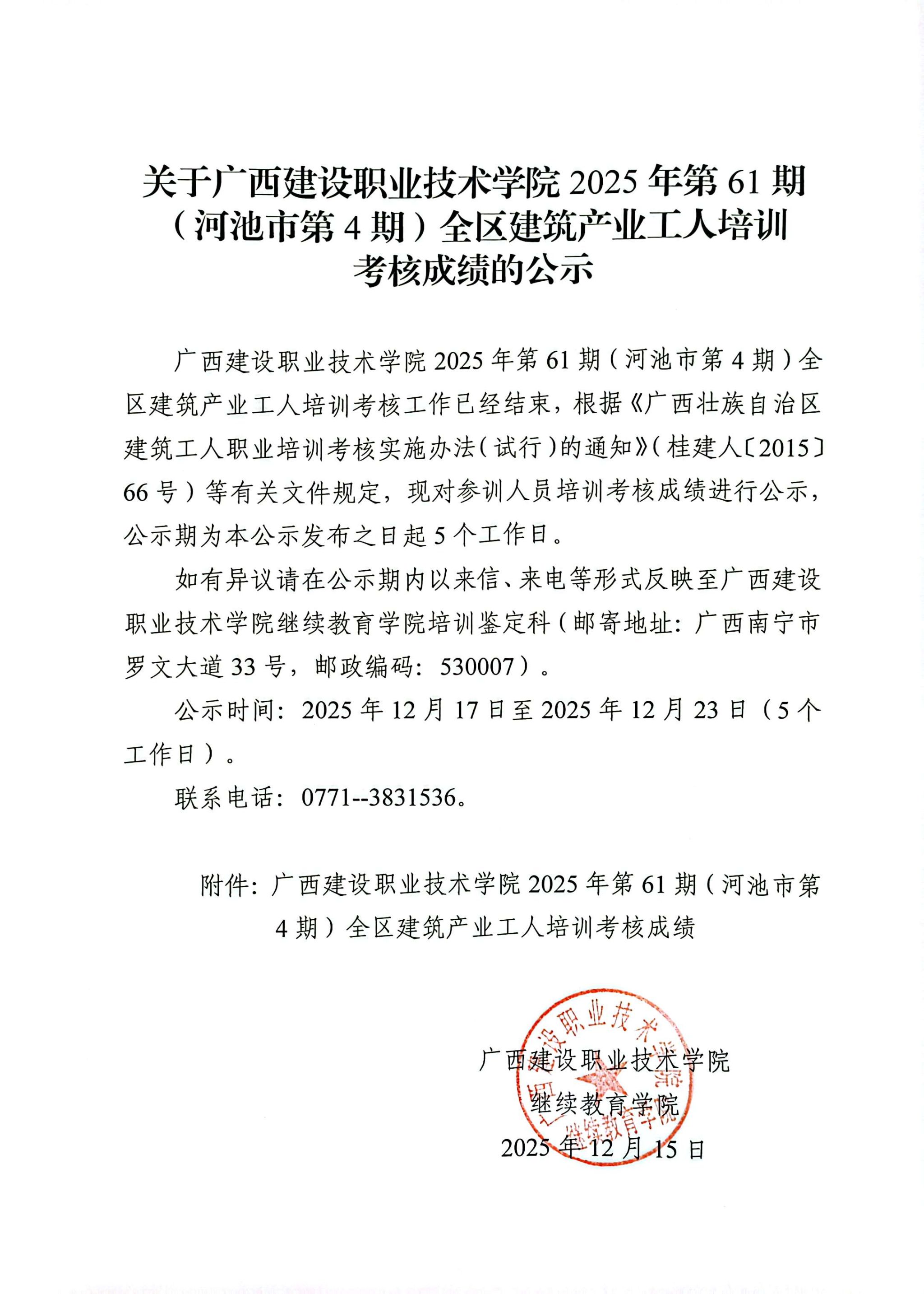 培训信息 当前位置: 首页 >> 培训信息 >> 正文 关于od平台官方官网2025年第61期(河池市第4期)全区od平台官方官网产业工人培训考核成绩的公示 发布日期:2025-12-17 点击: 附件【关于od平台官方官网2025年第61期(河池市第4期)全区od平台官方官网产业工人培训考核成绩的公示.pdf】已下载次