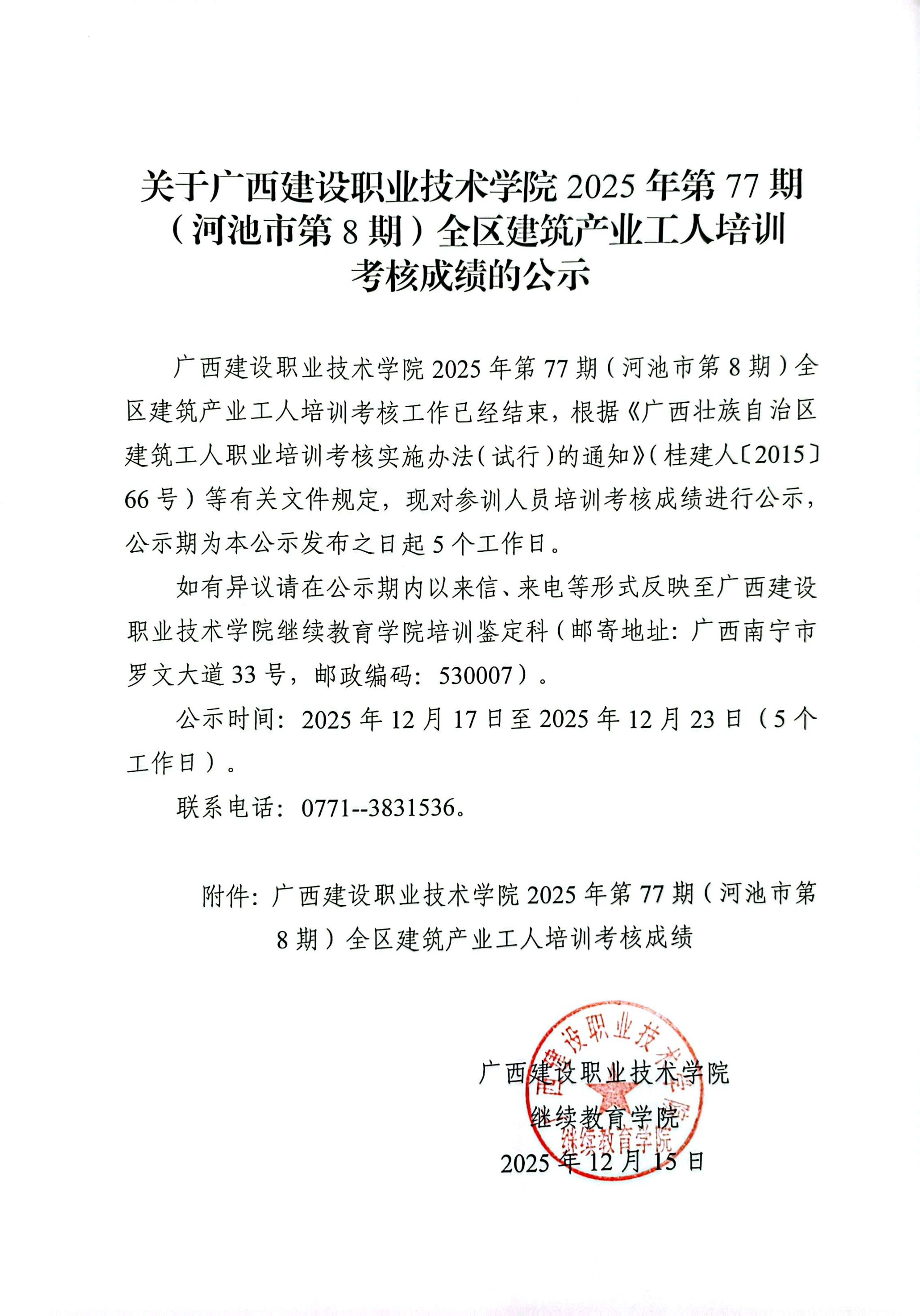 培训信息 当前位置: 首页 >> 培训信息 >> 正文 关于od平台官方官网2025年第77期(河池市第8期)全区od平台官方官网产业工人培训考核成绩的公示 发布日期:2025-12-18 点击: 附件【关于od平台官方官网2025年第77期(河池市第8期)全区od平台官方官网产业工人培训考核成绩的公示.pdf】已下载次