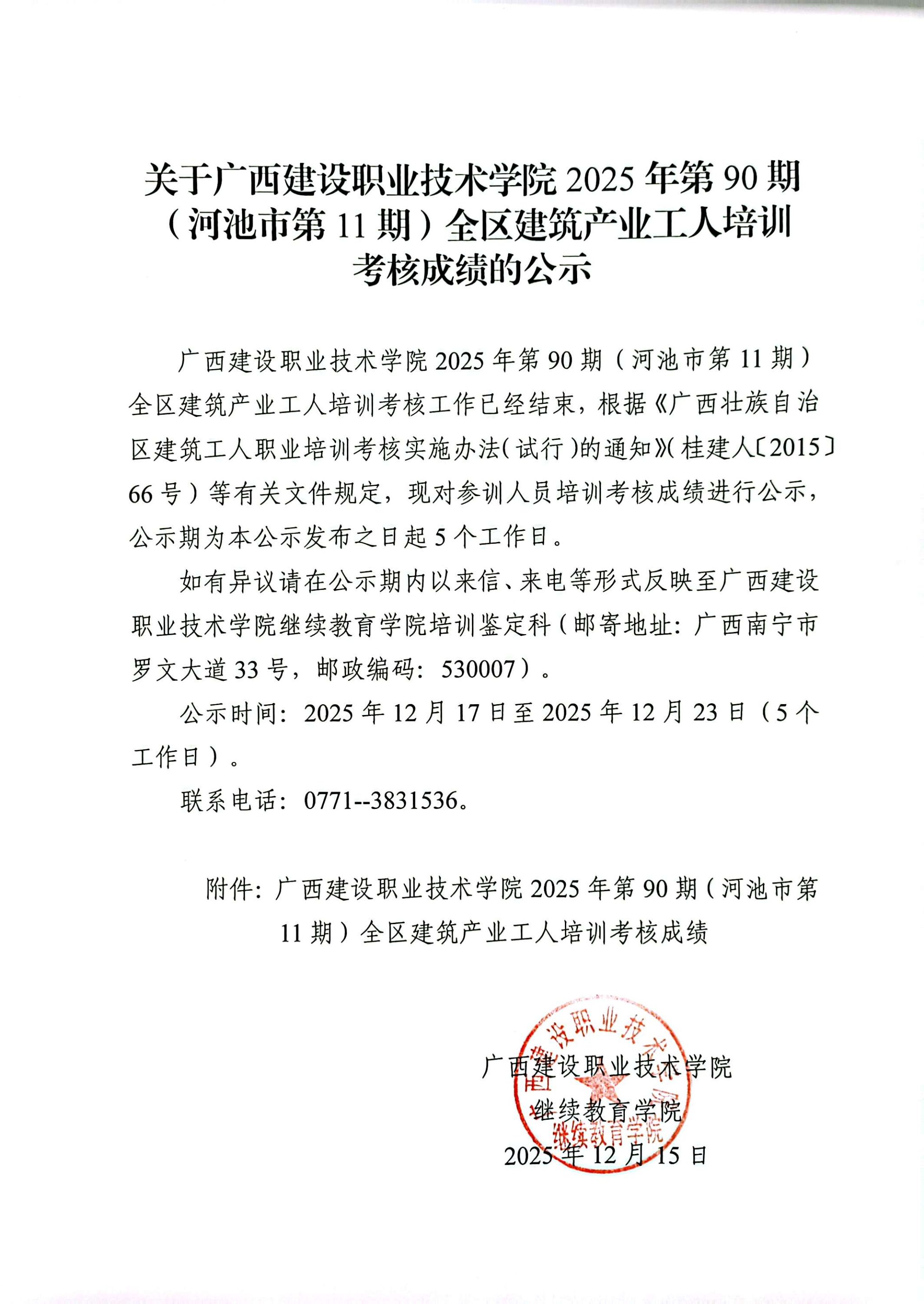 培训信息 当前位置: 首页 >> 培训信息 >> 正文 关于od平台官方官网2025年第90期(河池市第11期)全区od平台官方官网产业工人培训考核成绩的公示 发布日期:2025-12-18 点击: 附件【关于od平台官方官网2025年第90期(河池市第11期)全区od平台官方官网产业工人.pdf】已下载次
