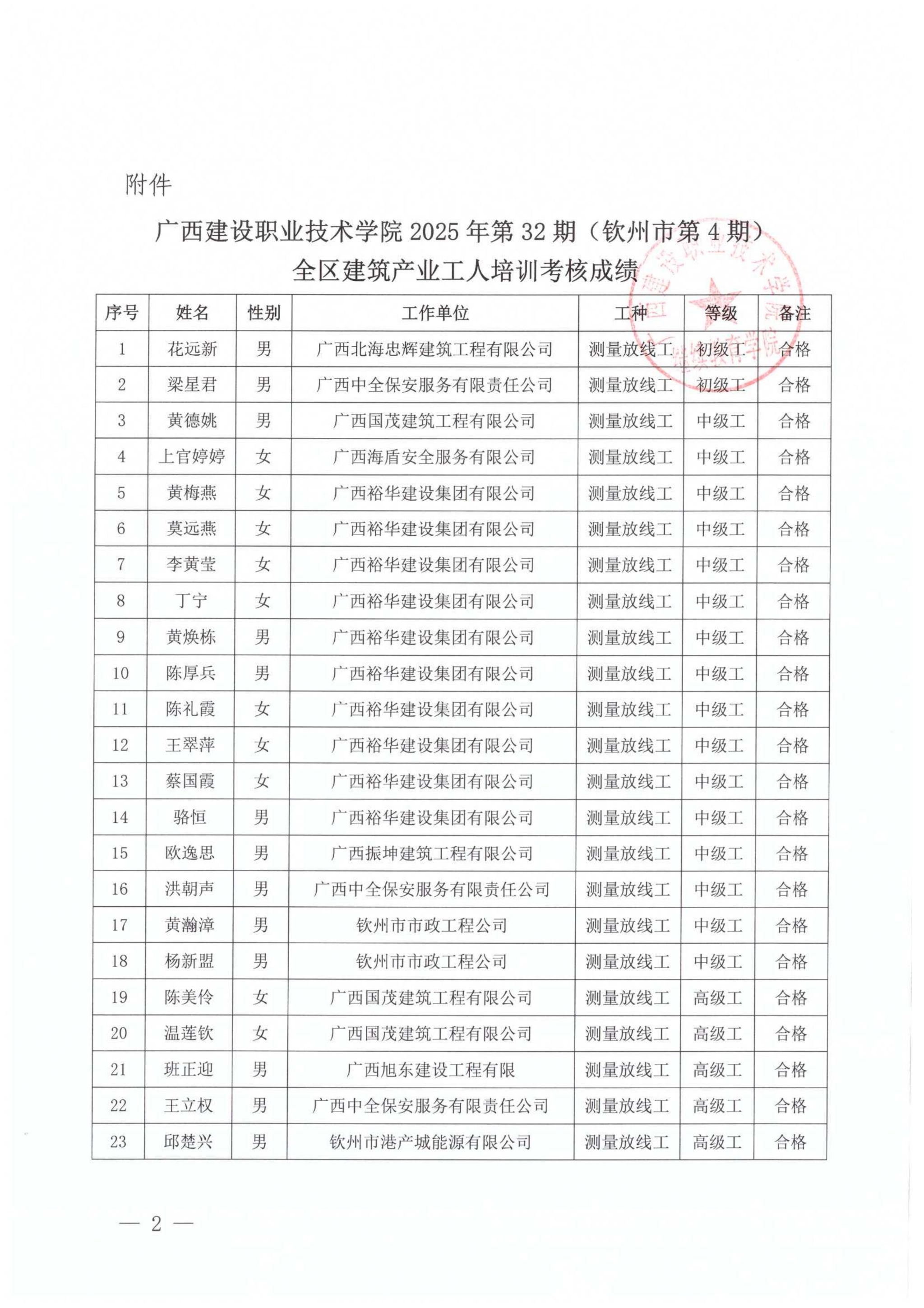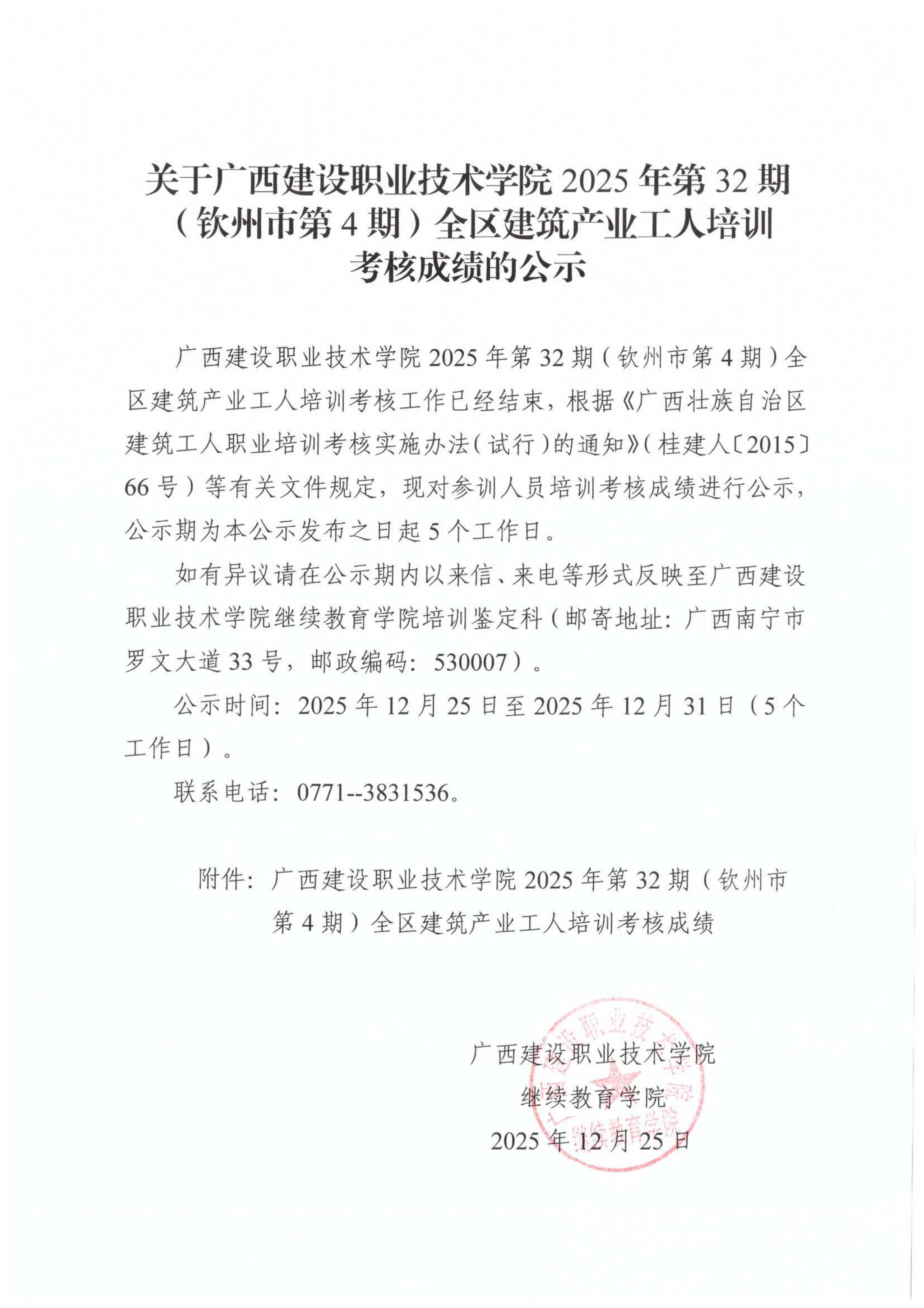 培训信息 当前位置: 首页 >> 培训信息 >> 正文 关于od平台官方官网2025年第32期(钦州市第4期)全区od平台官方官网产业工人培训考核成绩的公示 发布日期:2025-12-25 点击: 附件【关于od平台官方官网2025年第32期(钦州市第4期)全区od平台官方官网产业工人培训考核成绩的公示.pdf】已下载次