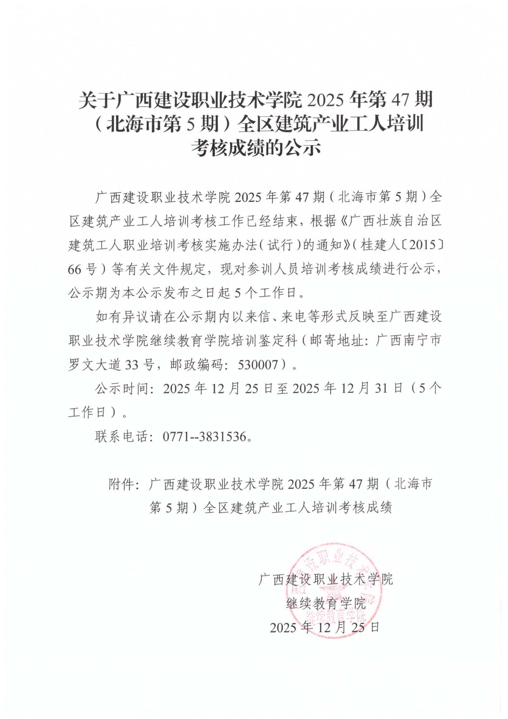 培训信息 当前位置: 首页 >> 培训信息 >> 正文 关于od平台官方官网2025年第47期(北海市第5期)全区od平台官方官网产业工人培训考核成绩的公示 发布日期:2025-12-25 点击: 附件【关于od平台官方官网2025年第47期(北海市第5期)全区od平台官方官网产业工人培训考核成绩的公示.pdf】已下载次
