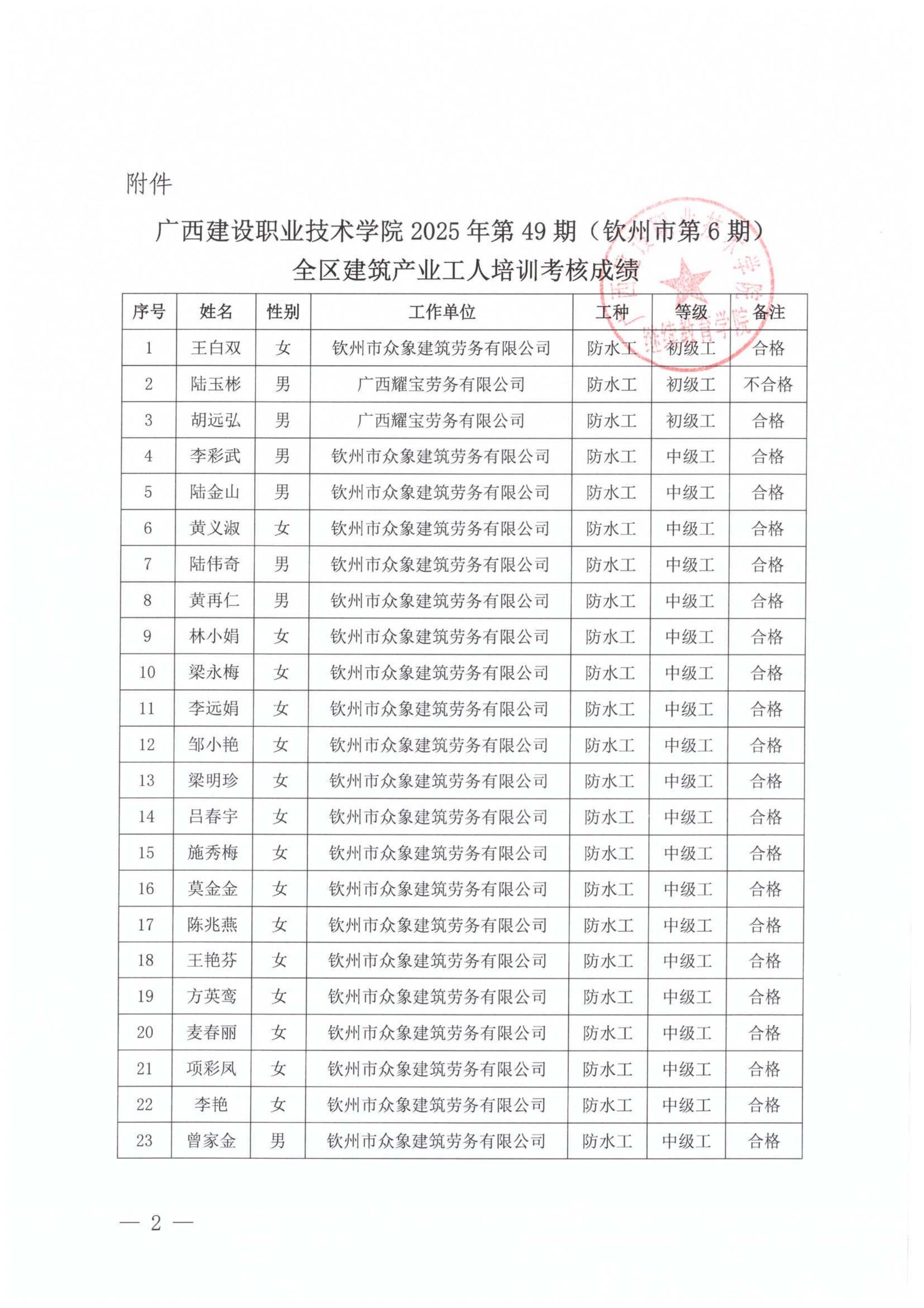 培训信息 当前位置: 首页 >> 培训信息 >> 正文 关于od平台官方官网2025年第49期(钦州市第6期)全区od平台官方官网产业工人培训考核成绩的公示 发布日期:2025-12-25 点击: 附件【关于od平台官方官网2025年第49期(钦州市第6期)全区od平台官方官网产业工人培训考核成绩的公示.pdf】已下载次
