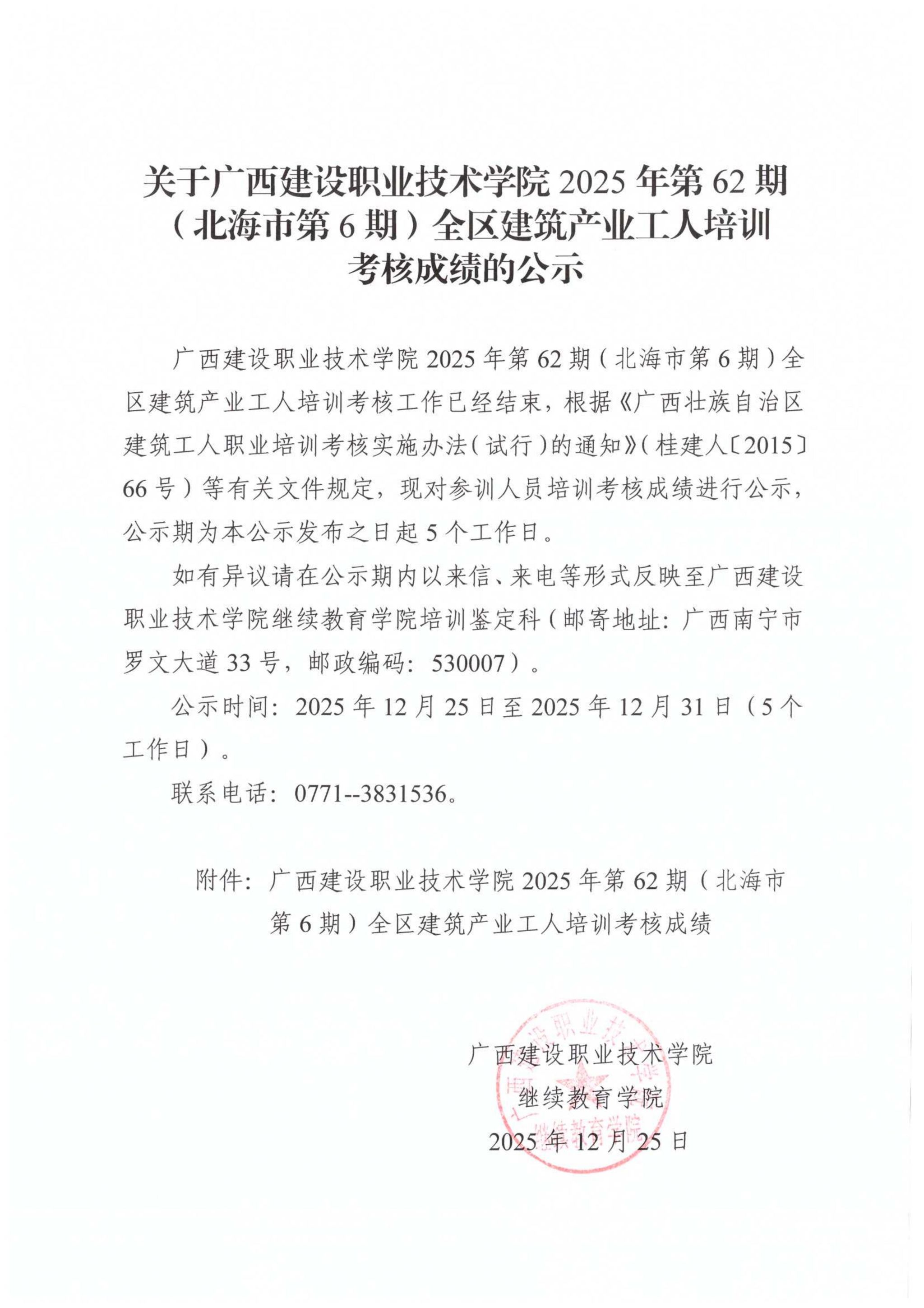 培训信息 当前位置: 首页 >> 培训信息 >> 正文 关于od平台官方官网2025年第62期(北海市第6期)全区od平台官方官网产业工人培训考核成绩的公示 发布日期:2025-12-25 点击: 附件【关于od平台官方官网2025年第62期(北海市第6期)全区od平台官方官网产业工人培训考核成绩的公示.pdf】已下载次
