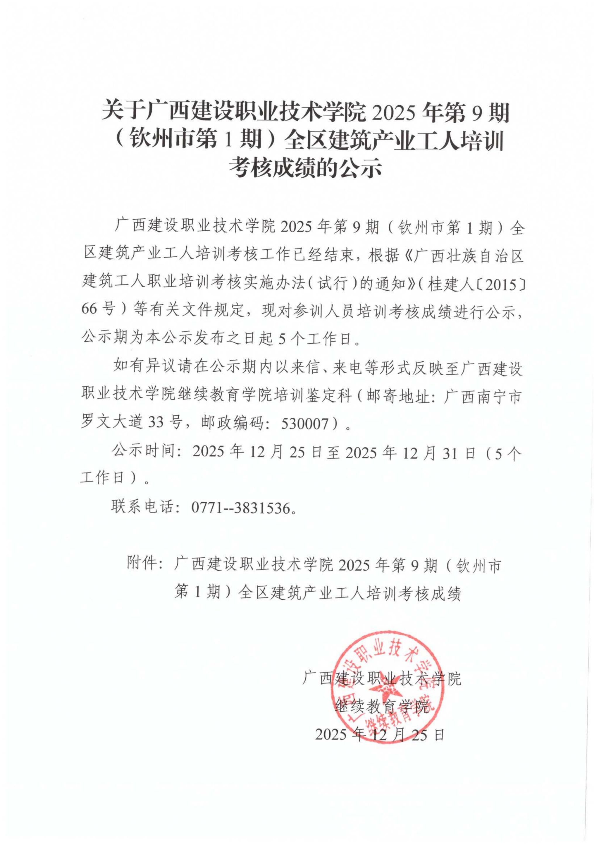 培训信息 当前位置: 首页 >> 培训信息 >> 正文 关于od平台官方官网2025年第9期(钦州市第1期)全区od平台官方官网产业工人培训考核成绩的公示 发布日期:2025-12-26 点击: 附件【关于od平台官方官网2025年第9期(钦州市第1期)全区od平台官方官网产业工人培训考核成绩的公示.pdf】已下载次