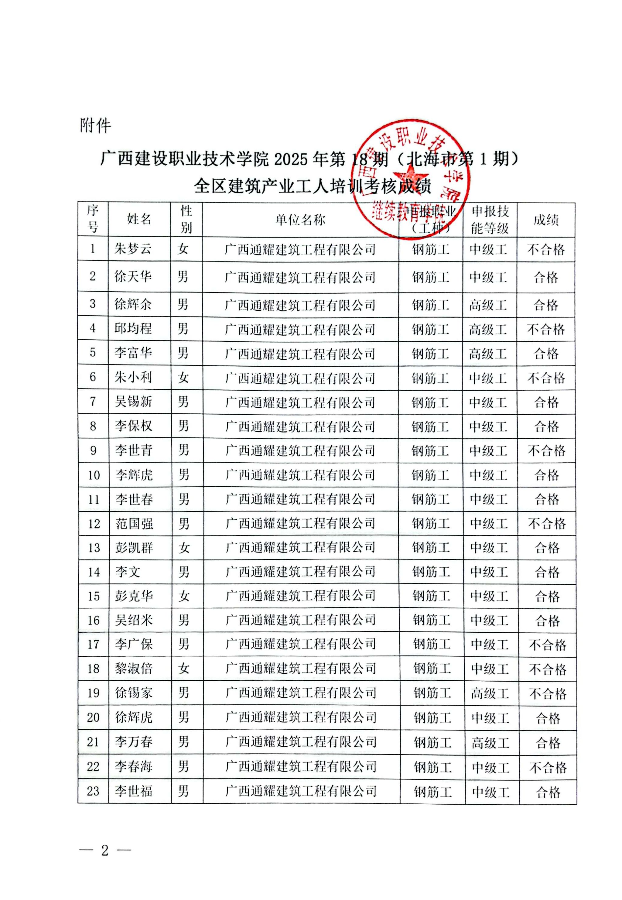 培训信息 当前位置: 首页 >> 培训信息 >> 正文 关于od平台官方官网2025年全区od平台官方官网产业工人第18期(北海市第1期)培训考核成绩的公示(盖章扫描) 发布日期:2025-12-29 点击: 附件【关于od平台官方官网2025年全区od平台官方官网产业工人第18期(北海市第1期)培训考核成绩的公示(盖章扫描).pdf】已下载次