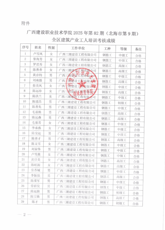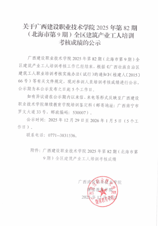 培训信息 当前位置: 首页 >> 培训信息 >> 正文 关于od平台官方官网2025年全区od平台官方官网产业工人第82期(北海市第9期)培训考核成绩的公示 发布日期:2025-12-29 点击: 附件【关于od平台官方官网2025年全区od平台官方官网产业工人第82期(北海市第9期)培训考核成绩的公示.pdf】已下载次