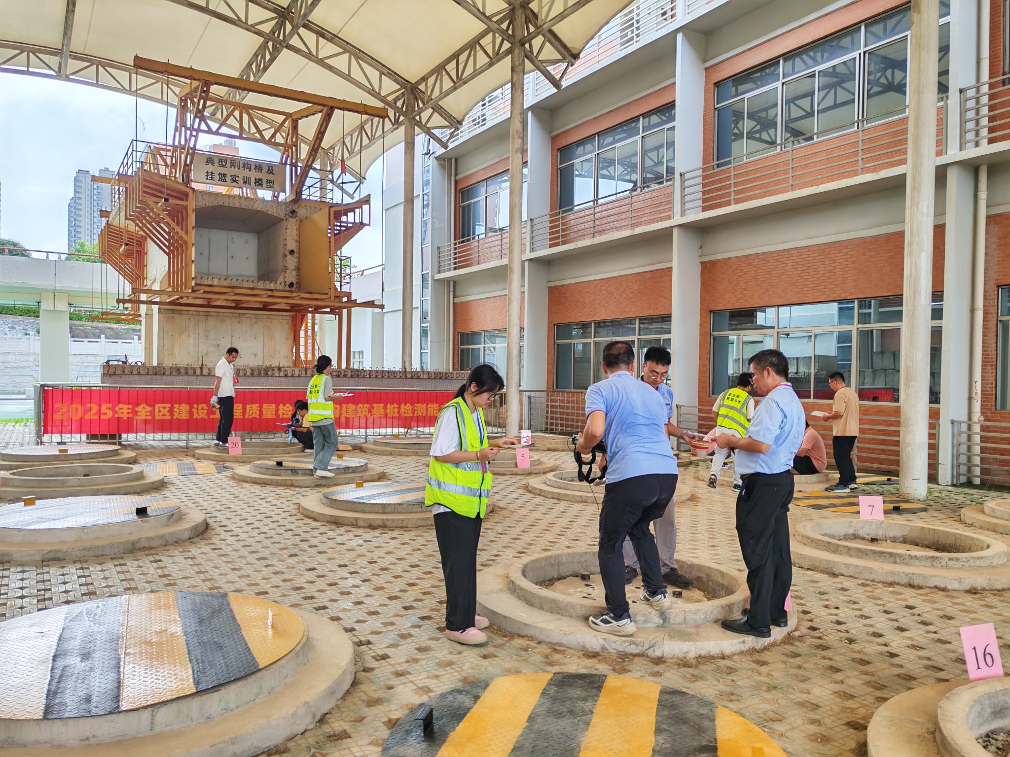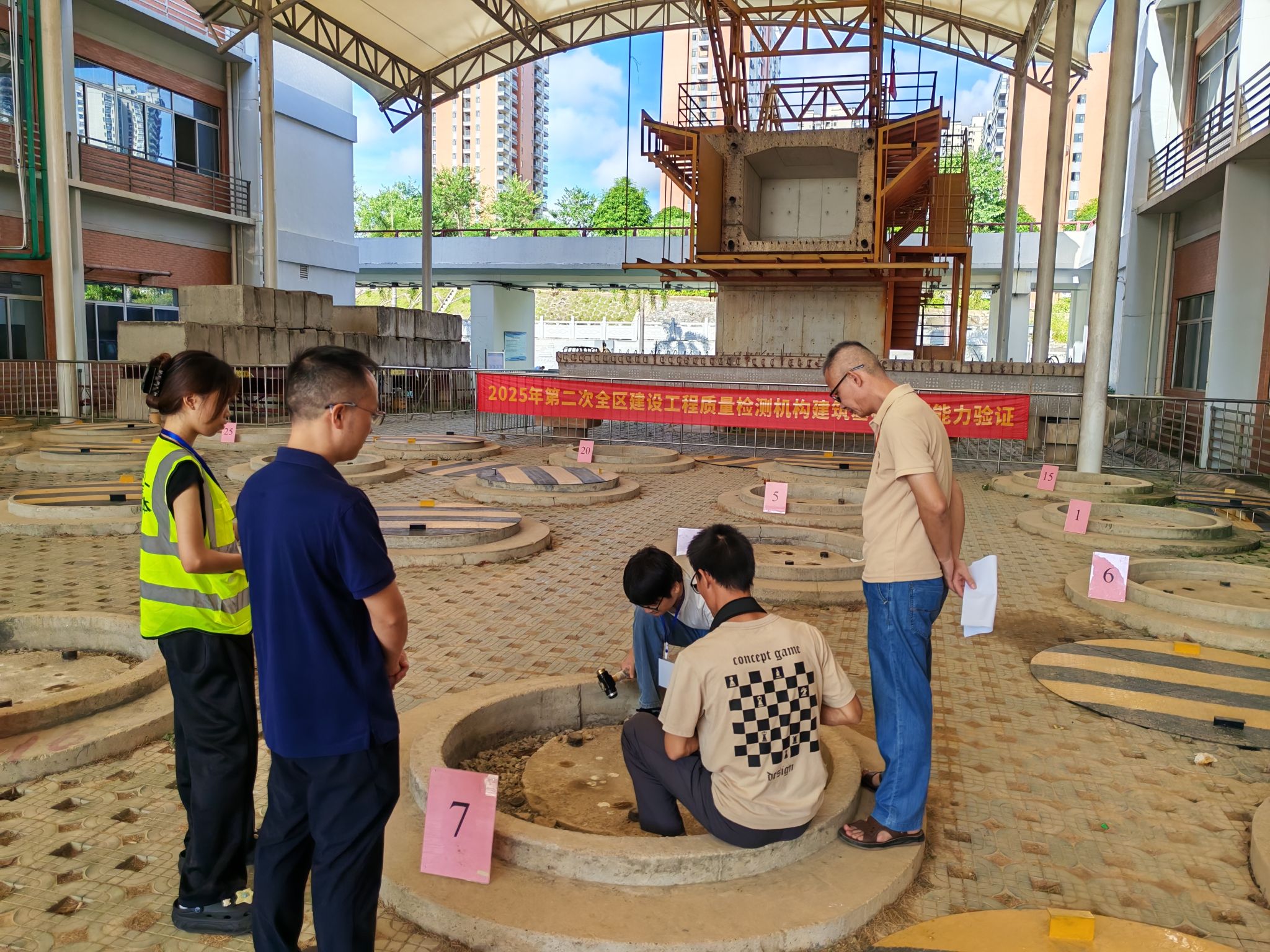 市政与交通学院9月15日讯(图/文 曾庆建)2025年全区建设工程质量检测机构od平台官方官网基桩检测能力验证活动,近日在我院桩基及地基检测实训基地顺利落幕。本次验证既检验行业机构能力,更为我院学子搭建了“零距离”对接行业的实践平台。