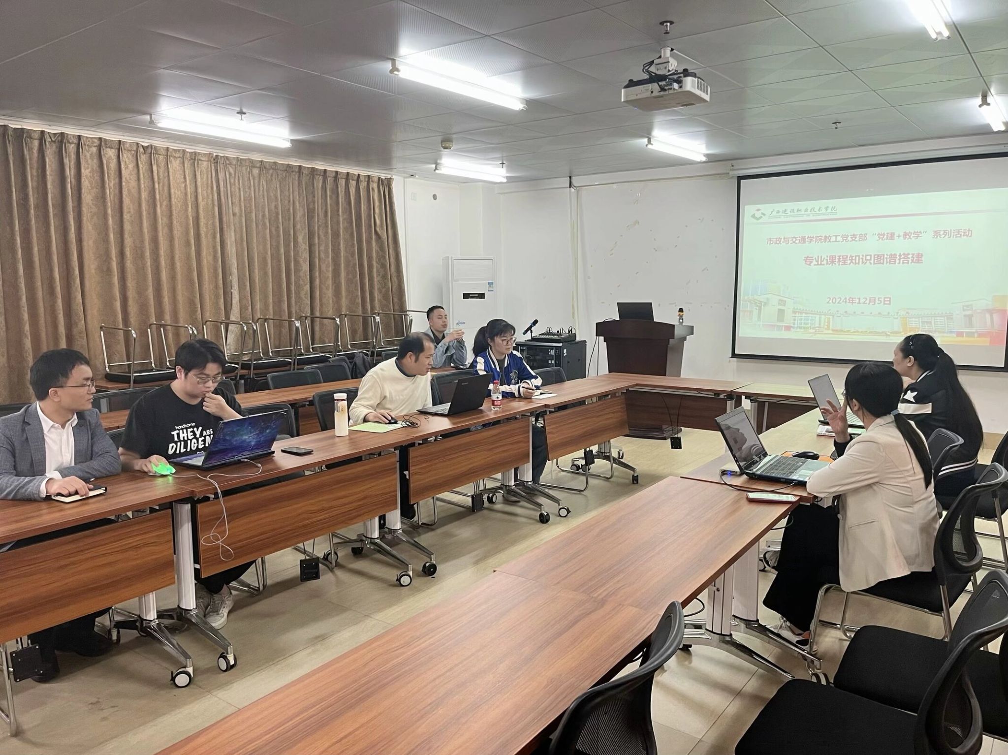 市政与交通学院12月5日讯(图/文 黄群)为提升学院教师数字素养,推动知识图谱助力专业建设,打造专业课程智慧化升级,12月5日下午,市政与交通学院教工党支部开展“党建+教学”知识图谱赋能教学创新主题党日活动。
