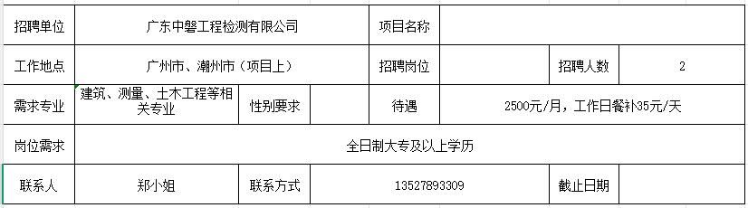 【招聘】广东中磐工程检测有限公司