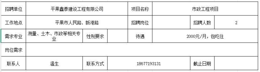 【招聘】平果鑫泰建设工程有限公司