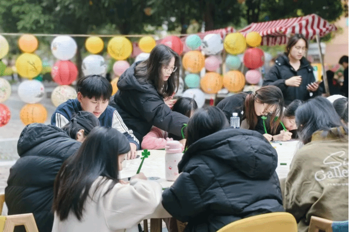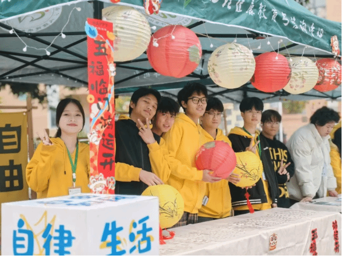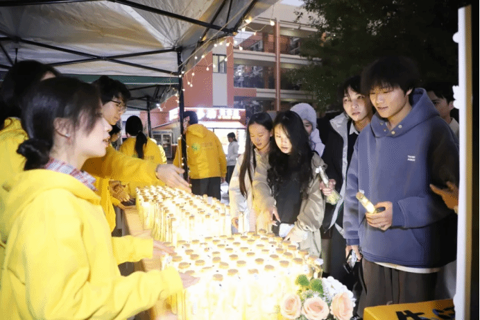 在白天的“新年心愿 花灯祈福”活动中,同学们DIY祈福花灯,在主题展板张贴“新年心愿”,用温暖烛光映亮心愿,祈福新年福泽满盈。