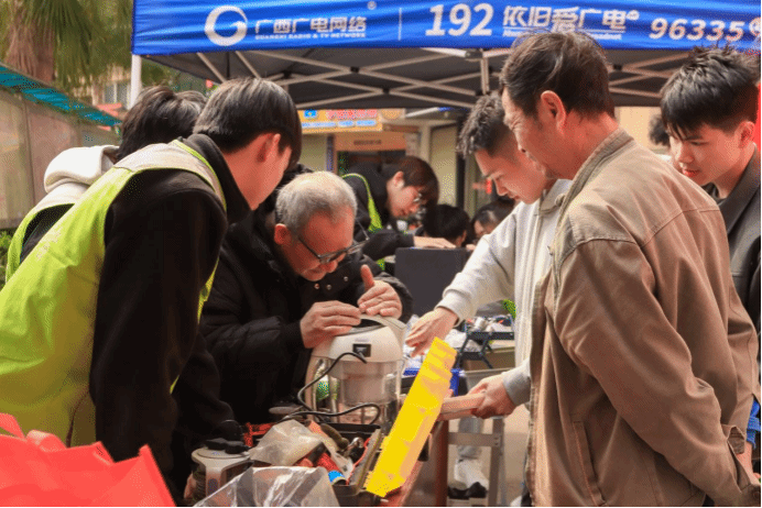 志愿者正在为居民维修家用电器