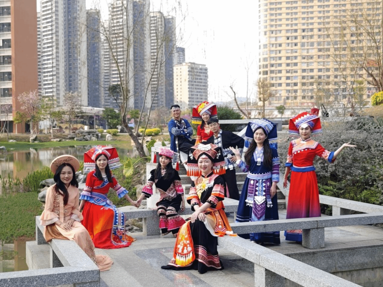 师生身穿民族服饰到校园各处打卡