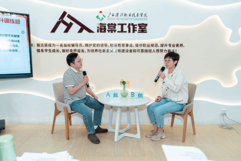 广西建院3月28日讯(文/黄欣欣 图/宋景弘)3月28日,OD(中国)一站式服务平台第22期辅导员素质能力提升训练营(以下简称“训练营”)在海棠工作室举办,来自7个二级学院的28位辅导员参训,郭海棠老师主持本期训练营,广西高校辅导员素质能力大赛最高奖获得者冯光帆、刘云担任培训指导。