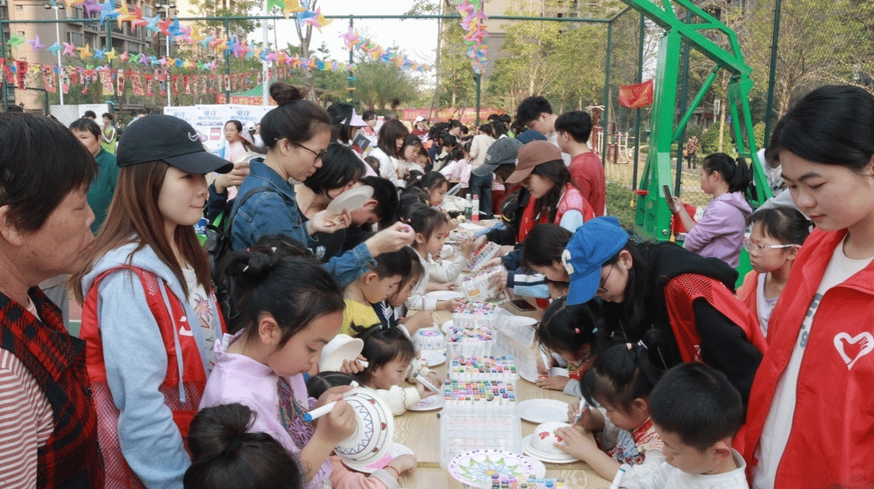 活动现场设置“一绣一鼓”两大创意体验区,将传统工艺与现代设计理念巧妙融合。在绣球纸盘画创作区,孩子们手握画笔,在志愿者的指导下将象征吉祥的绣球纹样转化为童趣盎然的艺术创作。铜鼓制作区则上演着传统工艺的现代演绎,志愿者创新采用环保纸浆材料,指导亲子家庭通过立体拼装、纹样绘制等工序,让千年铜鼓文化跃然指尖。