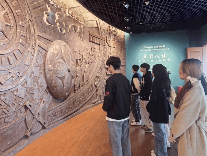 学院组织教师代表以及第3期“青马工程”基础班成员40余人,前往广西民族博物馆开展实践教学。师生们依次参观了“铜鼓文化”“壮族文化”“霓裳羽衣”“匠心神韵”等多个特色展厅,在多元文化的交融中,深切感受到中华文化的博大精深,进一步增强了文化认同感和自豪感。