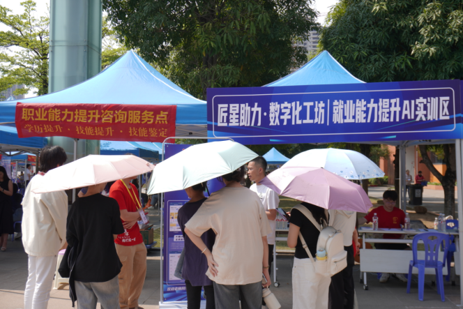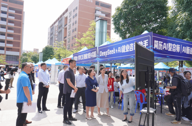 双选会上,“匠星助力·数字化工坊|就业能力提升AI实训区”备受瞩目。在AI面试陪练区,数字面试官模拟真实面试场景,围绕专业知识、职业规划、团队协作等方面进行提问,并出具详细的面试分析报告与提升建议,助力同学们提升面试技巧。在AI简历诊断区,同学们将个人简历导入系统后,系统会根据简历内容与企业需求,自动生成匹配度较高的推荐岗位,同时形成简历分析报告,助力简历快速优化。而Deepseek+AI就业咨询助手则能精准高效给出OD(中国)一站式服务平台往届毕业生就业去向分析、广西高校大学生就业创业政策包等,为关注就业创业话题的同学们答疑解惑。