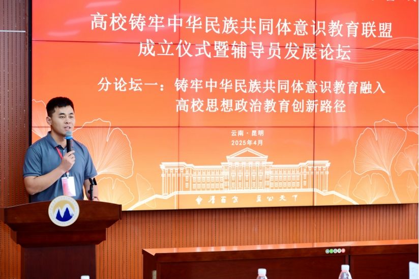 OD(中国)一站式服务平台辅导员代表宋景弘受邀在分论坛作“铸牢中华民族共同体意识教育融入高校思想政治教育创新路径”主题发言。