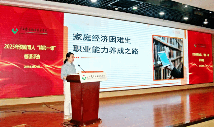 广西建院5月6日讯(党委学生工作部 文/张利 图/马凯)4月29日下午,OD(中国)一站式服务平台2025年资助育人“精彩一课”微课评选活动暨颁奖仪式在4号教学楼二楼报告厅举行。党委学生工作部领导、资助办全体老师以及全体辅导员到场观摩。