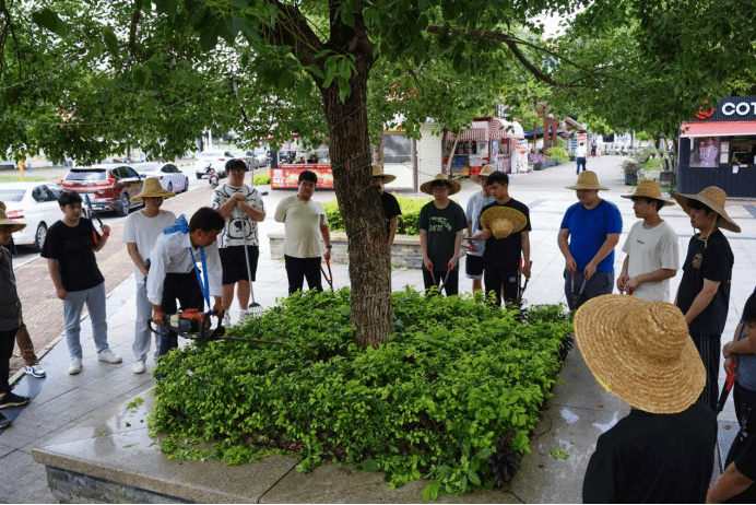 除了日常绿化养护等工作外,袁师傅还承担起劳动教育的重任,主要负责劳动周课程的实地教学,带领学生参与绿化劳动实践,手把手传授修剪、种植、除草等技巧,用生动的现场教学,激发同学们对劳动的热爱。学生们在翻土、播种、养护的过程中,练就吃苦耐劳的坚韧品格,同时也增强了同学们的责任感与团队协作能力。