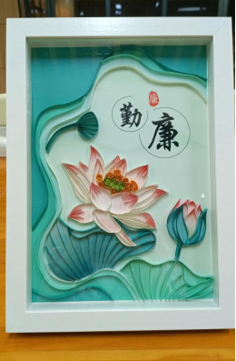 活动现场,教师们化身“廉洁工匠”,围绕“廉洁”主题,充分发挥创意与巧思。大家运用剪纸、衍纸DIY、拓印、手绘、非遗手工钉子绕线画等多种传统技艺,创作出一件件主题鲜明、意蕴深厚的作品。有的以“莲”“竹”等象征高洁的意象传递清廉理念,有的则通过“清”“廉”等文字艺术生动诠释廉洁内涵,将抽象的廉洁文化转化为可触可感的艺术表达。