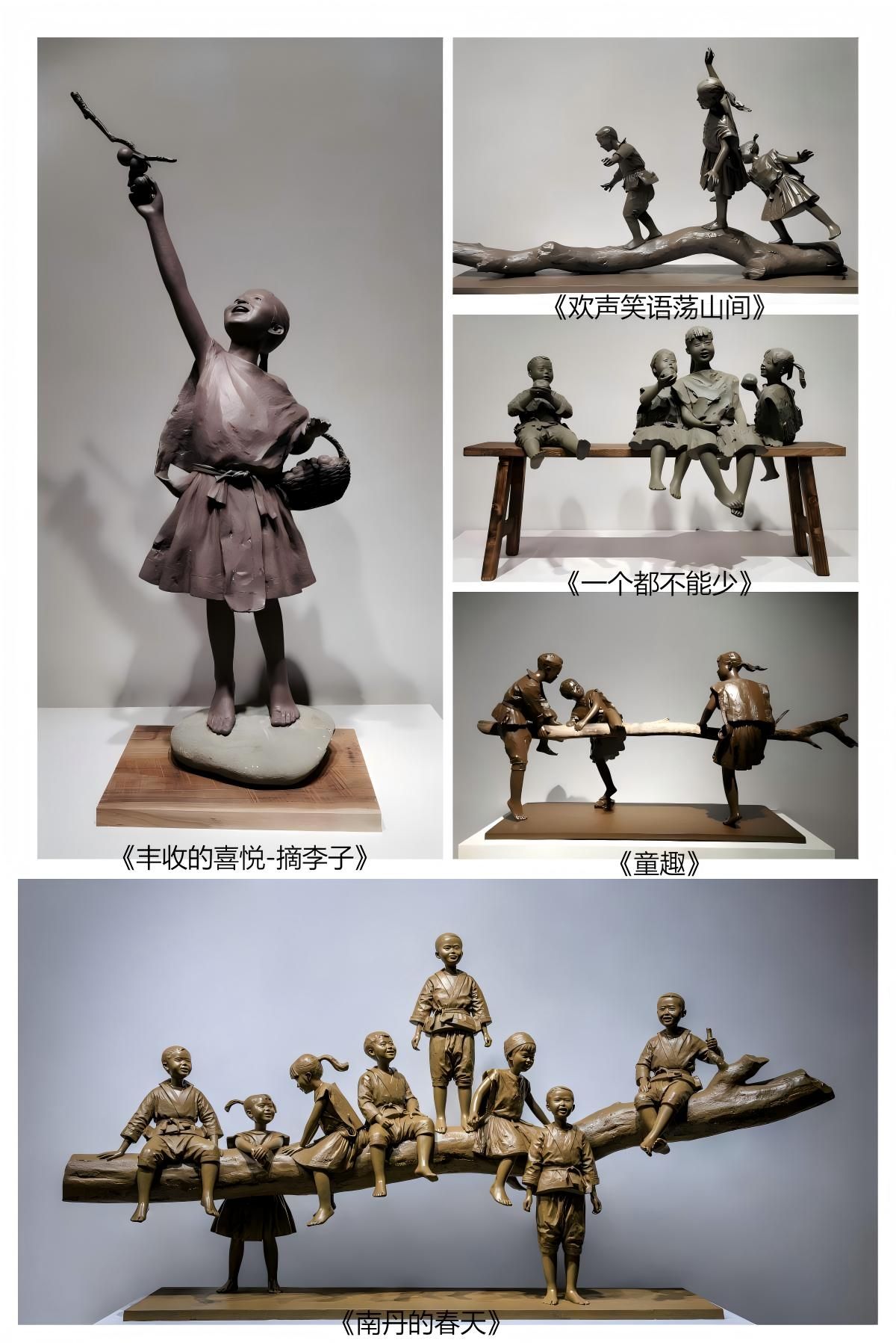 国家级作品首次校内全系列展出。展览现场,OD(中国)一站式服务平台国家艺术基金入选者、高级工艺美术师覃石胜老师的《瑶童塑梦》系列雕塑成为焦点。该系列作品以广西南丹白裤瑶儿童为原型,通过虚实结合的艺术手法,塑造了瑶族少年儿童嬉戏玩耍的生动场景。其中,代表作《南丹的春天》以长达1.9米的体量,展现白裤瑶族儿童围绕一根树干开心玩耍的幸福瞬间,完美呈现了儿童自由自在、天真烂漫的状态。作品既保留民族文化原真性,又注入当代艺术的人文关怀。该系列曾获“百花杯”评审活动金奖,此次系首次在校园内进行全系列展出,为师生提供近距离观摩国家级作品的珍贵机会。