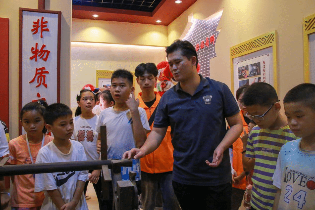 活动中,实践团成员首先向安置区的小朋友们介绍了“那”文化的有关知识,以课堂讲授、小组讨论、个人分享等形式调动小朋友们了解“那”文化的兴趣,课堂气氛活跃,达到了良好的教学效果。在指导老师谢安妮、周楠的带领下,实践团成员和小朋友们先后参观了隆安县非物质文化遗产展示厅、隆安县那文化展示厅。隆安县文化馆副馆长李晶、隆安县文体旅游局原党组书记黄连芳分别为同学们进行了精彩细致的讲解,让同学们得以更深入地了解隆安“那”文化精神,实地感受了“非遗”的魅力。