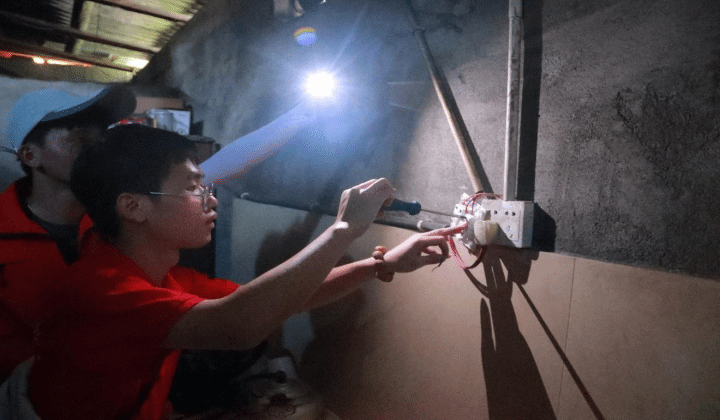 在村委工作人员的指引下,实践团队与消防救援大队走村入户,帮助村民排查家庭用电线路、插座、开关等设备的绝缘情况和安全性能。据统计,累计登记排查64户,协助村民换插座、整改线路等34户。团队发现大田村一户老兵家中用电插座裸露在外,稍不留神就会导致触电的悲剧发生。团队成员发现这一情况后,马上更换相应的插座,消除安全隐患,确保村民安全度夏。