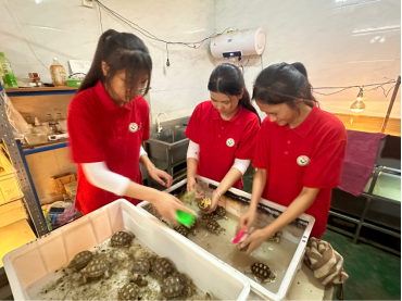 实践团成员参与农产品收割及特殊龟种的护理喂养